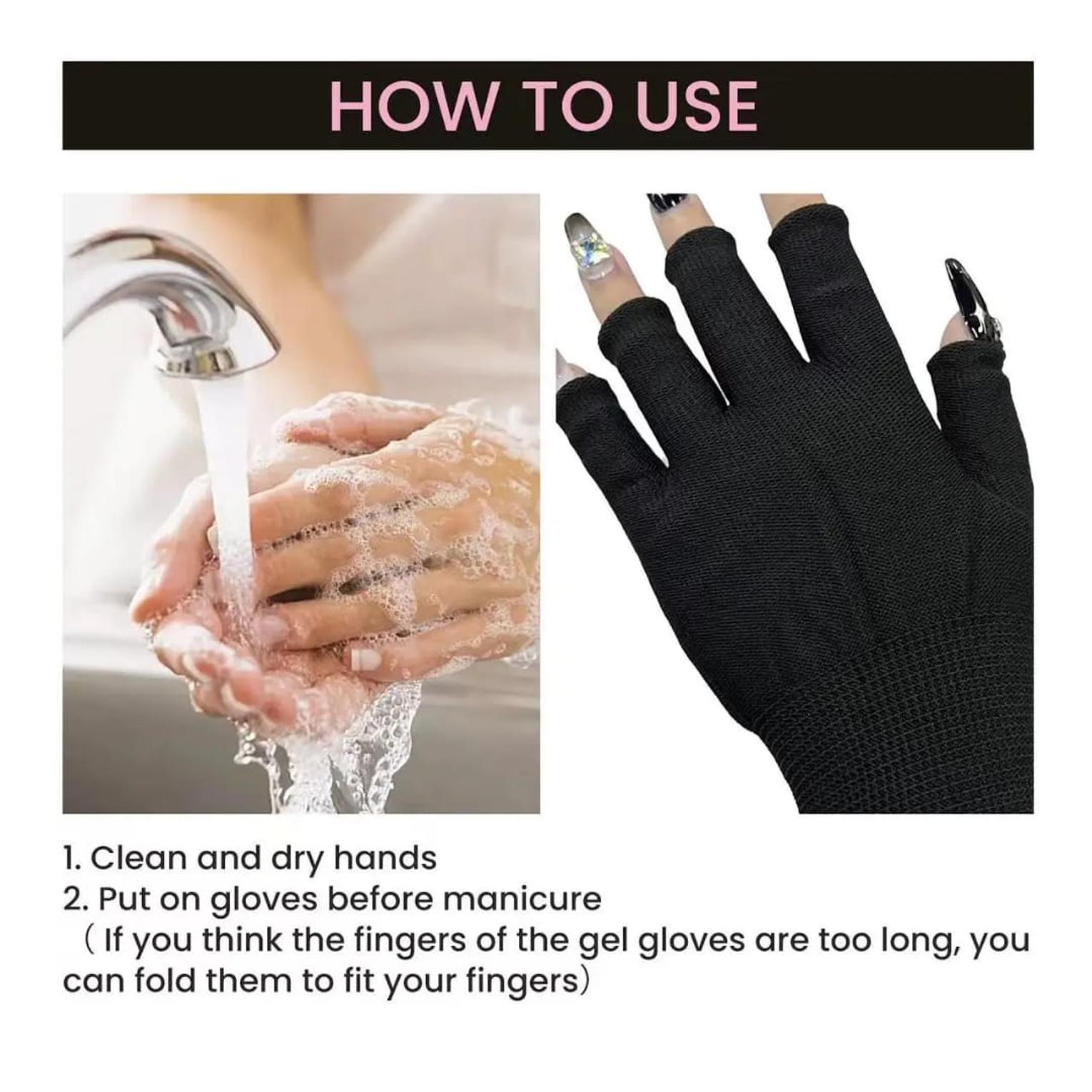 Stay safe while doing nail treatments with these anti-UV protective gloves designed for use under LED and UV nail lamps. Made with radiation-resistant material, they help shield your hands from harmful UV exposure during gel polish curing and nail art procedures. Lightweight and breathable, they offer comfort without restricting movement, making them ideal for both professional and home use. Perfect for manicure sessions, these gloves combine safety, practicality, and ease of use for healthier nail care routines.