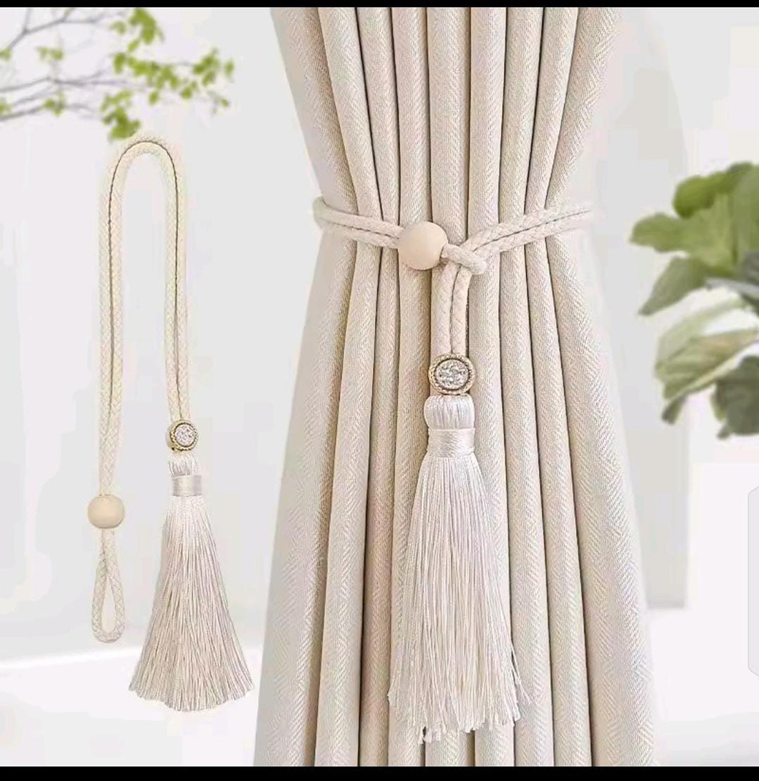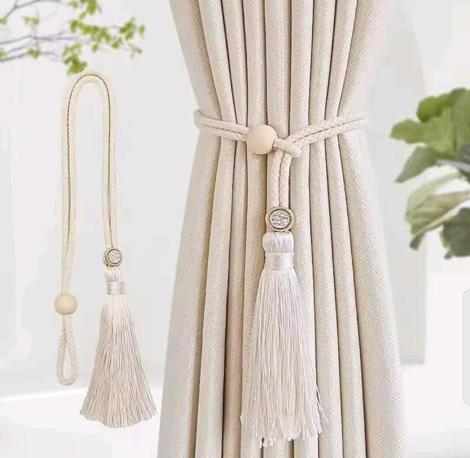 2 Bohemian fashion adjustable cotton cord curtain straps with rhinestone curtain buckles