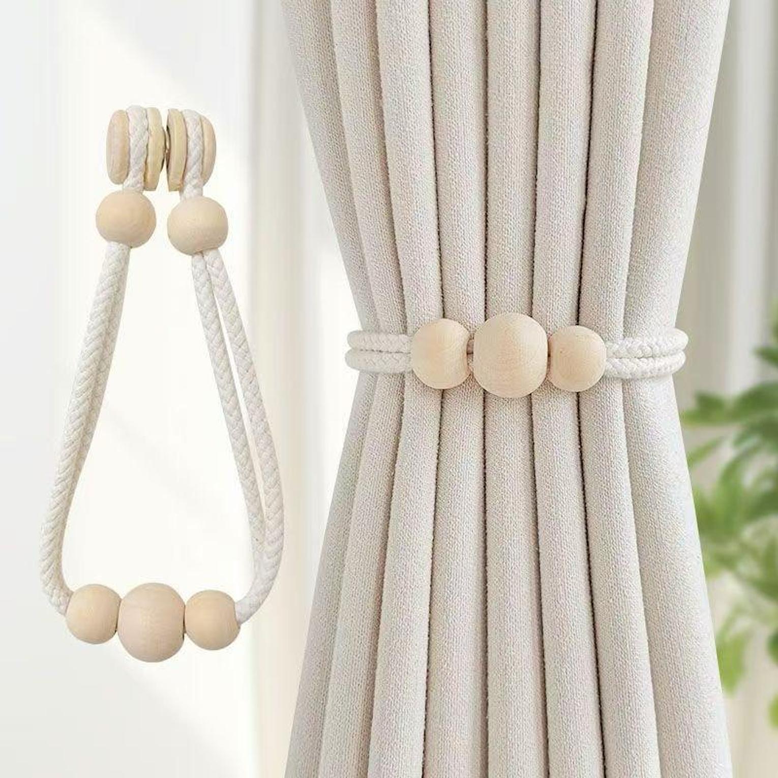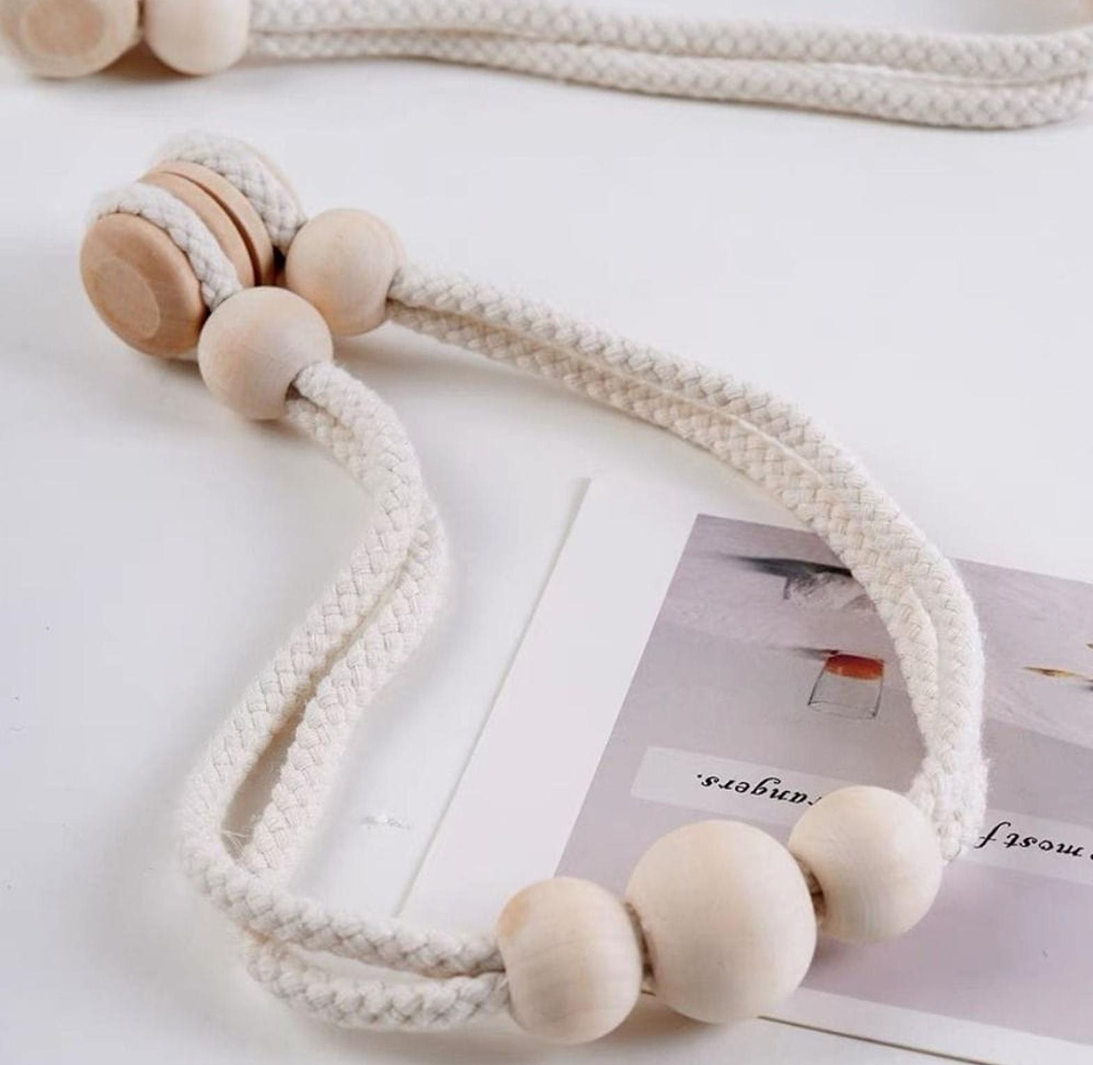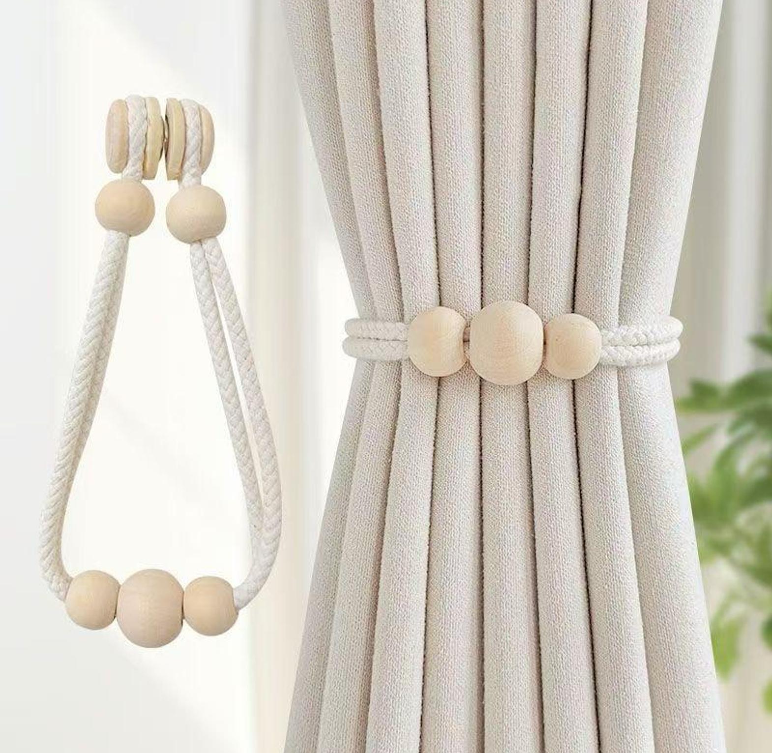 2Pcs Nordic Magnetic Curtain Binding Strap Solid Wood Woven Curtain Tiebacks Decorative Curtain Clasp Home Decoration