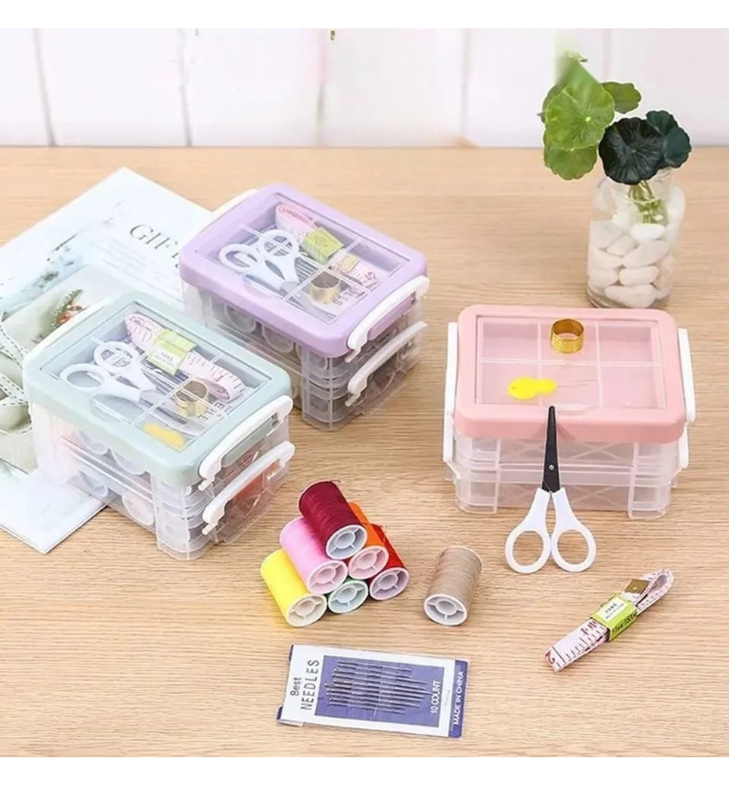 Premium Double-Layer Storage: Features a clear, two-story PP box that allows you to separate your thread spools from smaller accessories like needles and thimbles for effortless access.