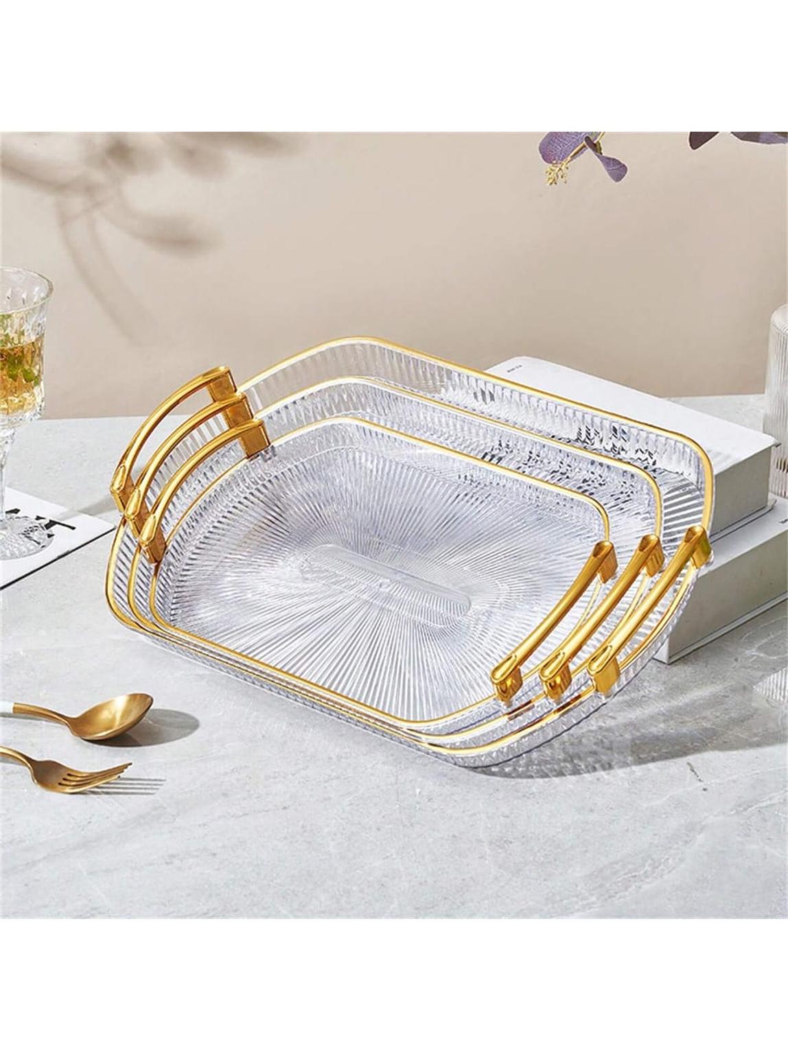 3pc European gold rectangular tray fruit tray tea tray cake tray cake tray jewelry box tray cake rack