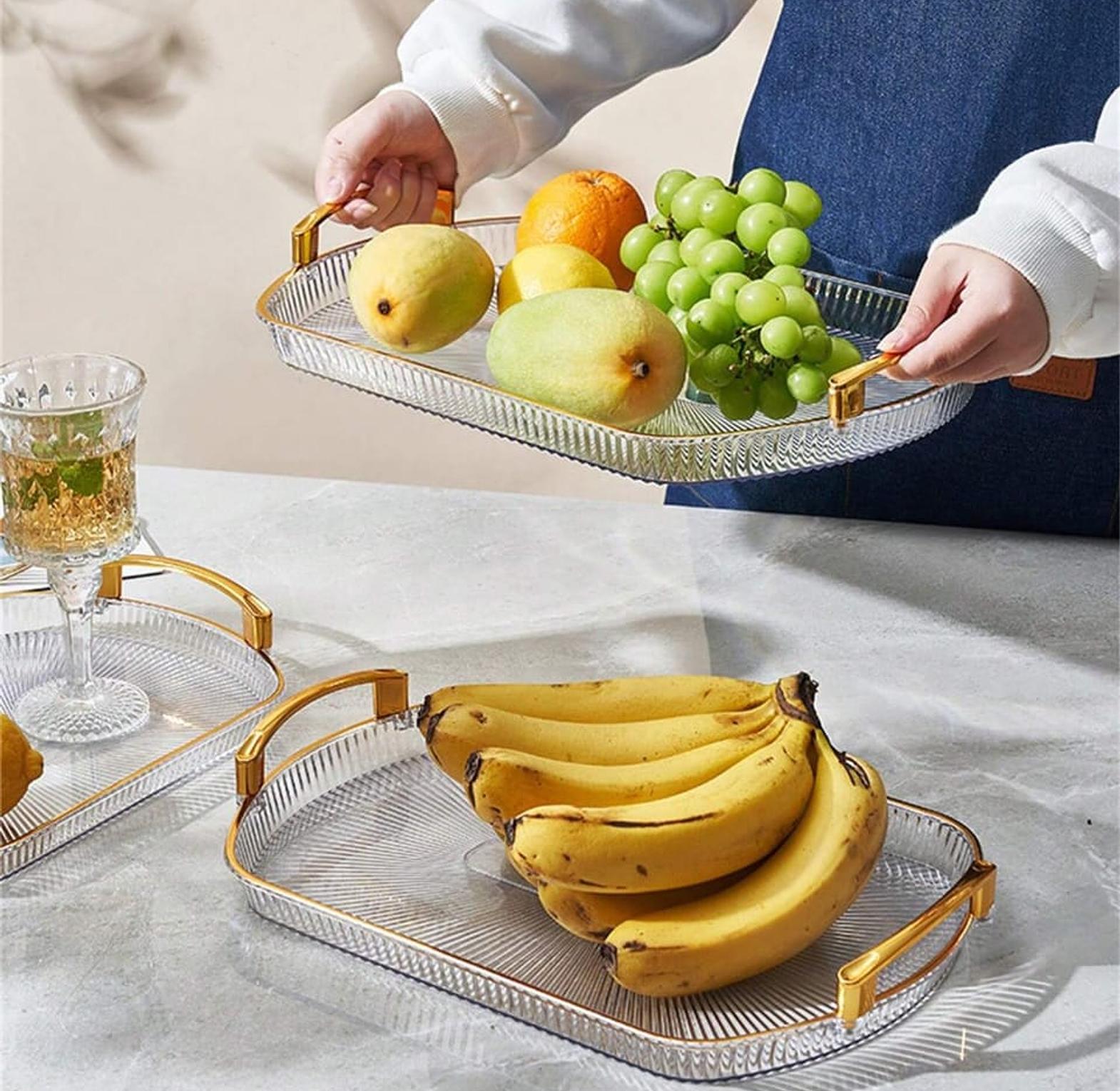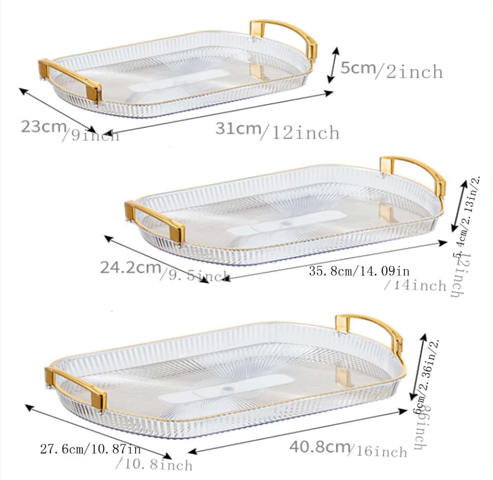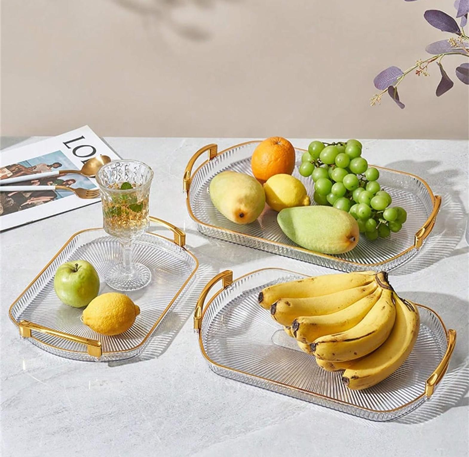 3pc European gold rectangular tray fruit tray
