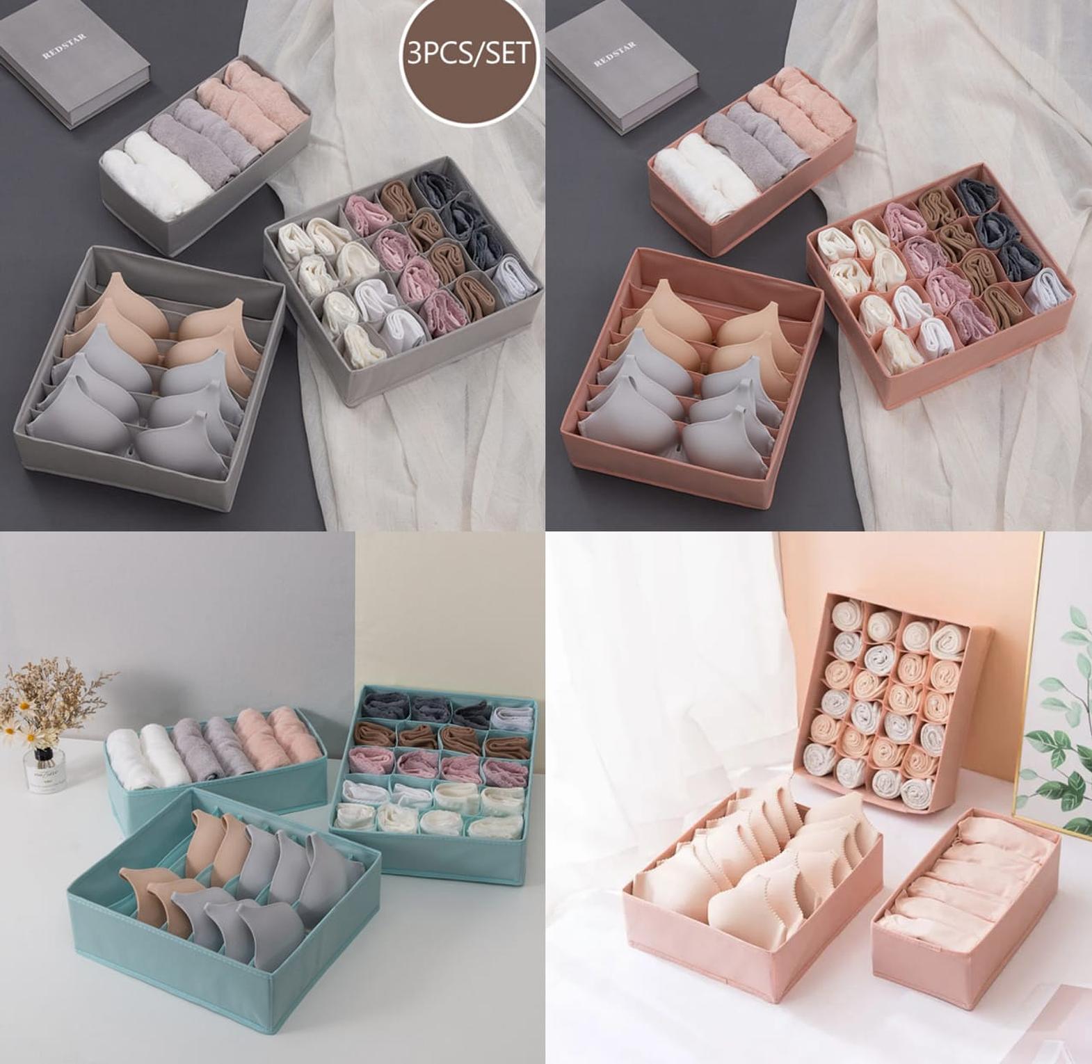 3Pcs/Set Underwear Bra Socks Towels Storage Box Wardrobe Drawer Foldable Muti Compartment Clothes Organizer