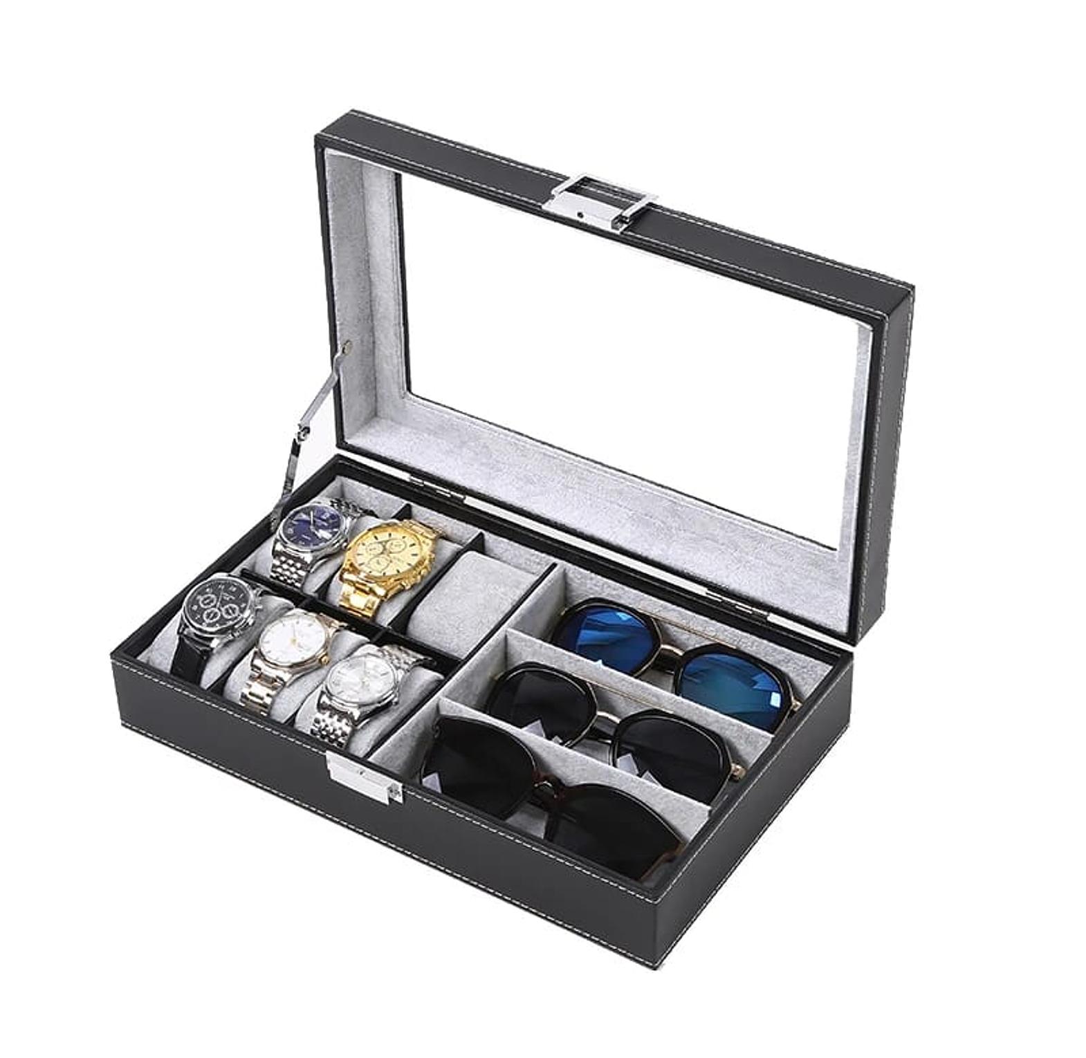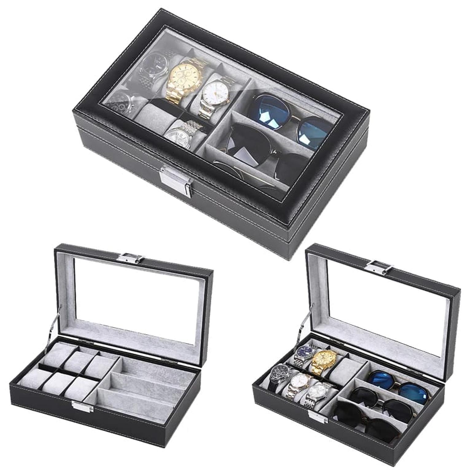6+3 Slots PU Leather Watch Sunglass Organizer Box