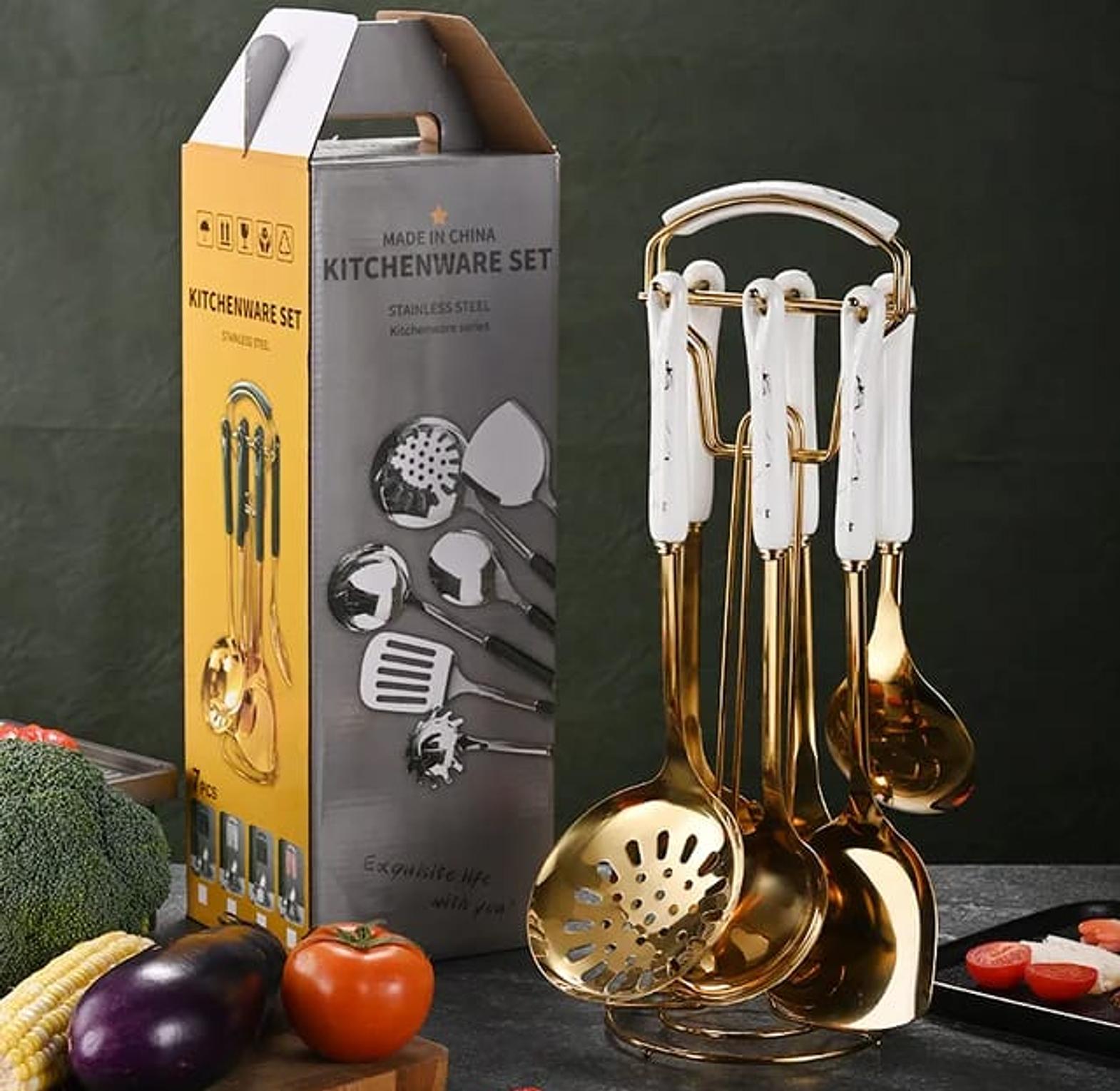 7pc stainless steel spatula soup spoon kitchenware set cooking spatula kitchen supplies ceramic handle Nordic kitchen tools