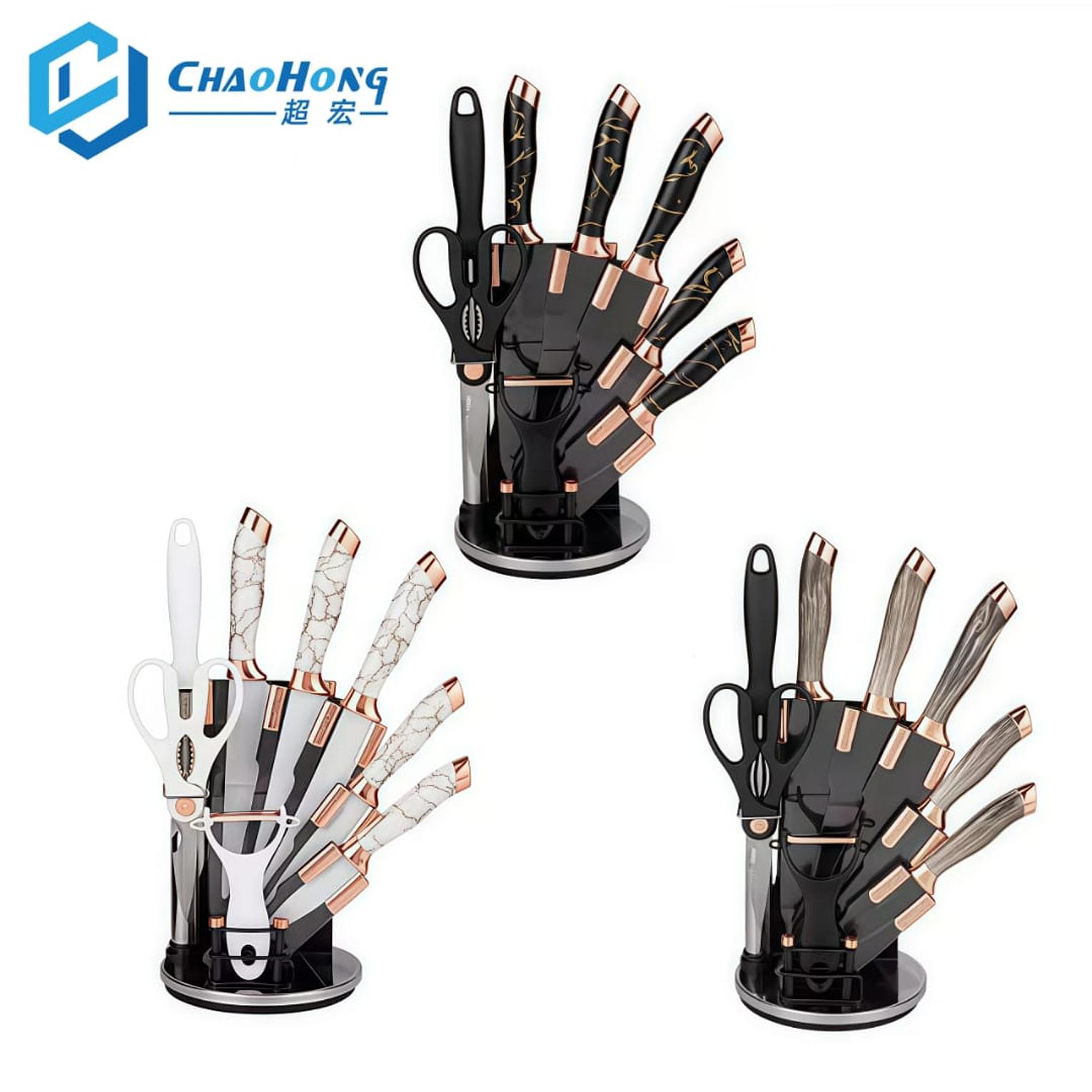 9 Piece Rose Gold Marble Pattern Paint Knife Set Elegant Durable Household Hotel Restaurant Knife Suit