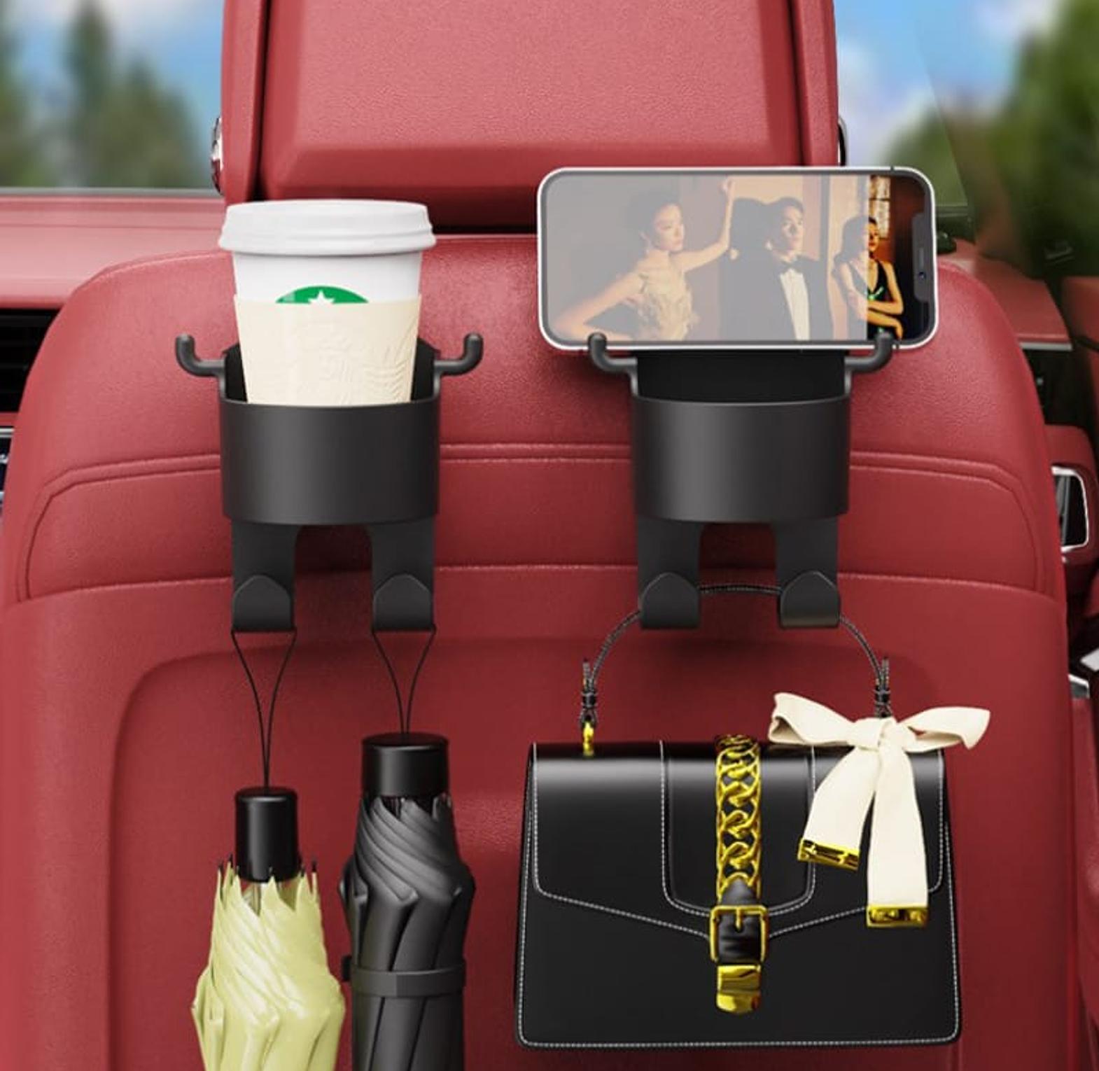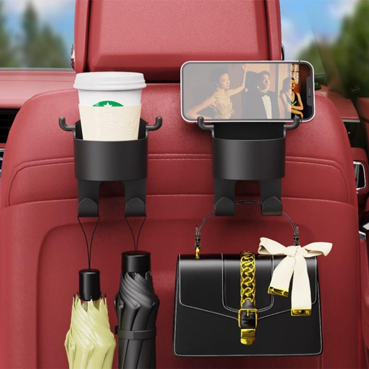 Car Seat Headrest Hook Hanger Storage Organizer Universal With Cup Holder For Handbag Fit Universal Vehicle Car Accessories
