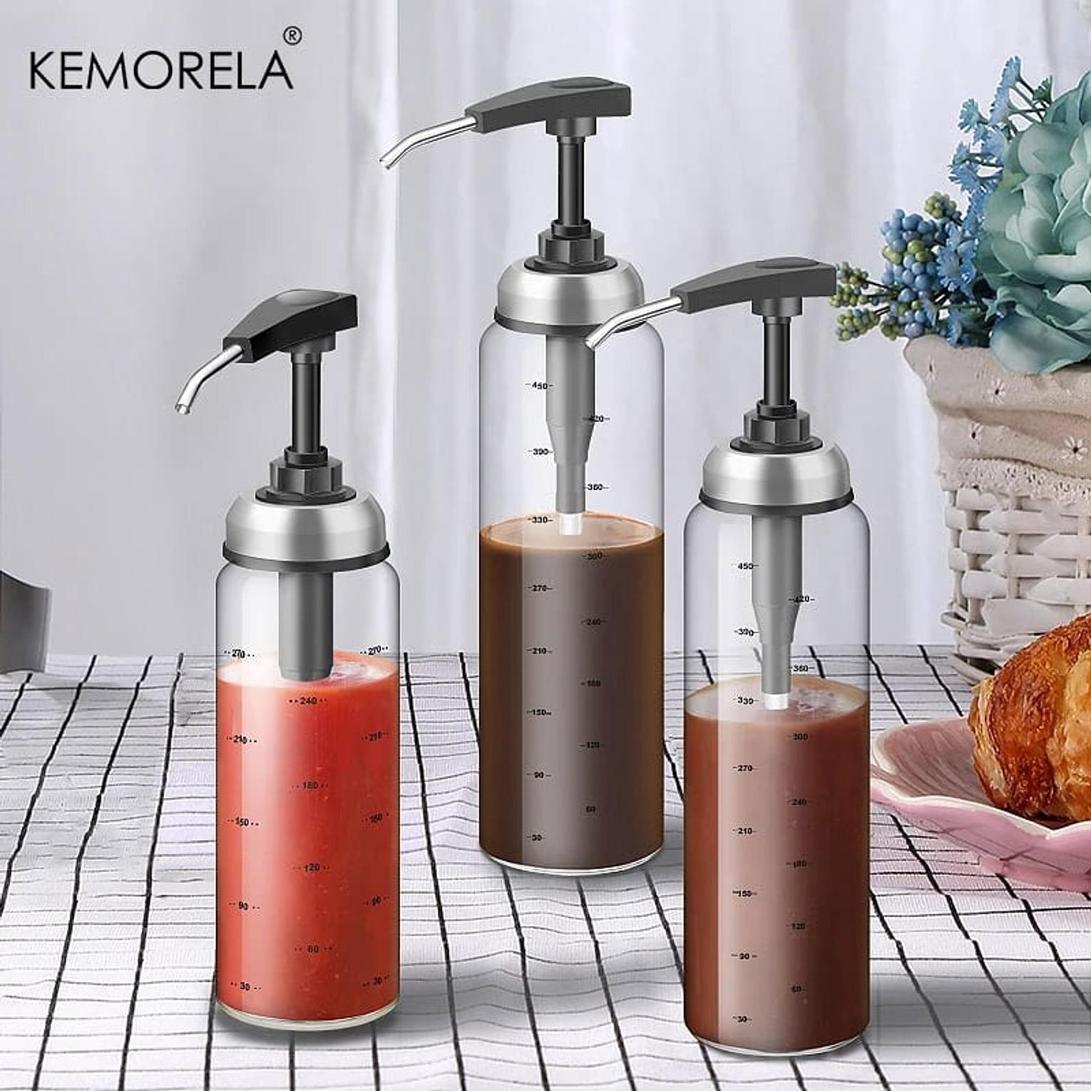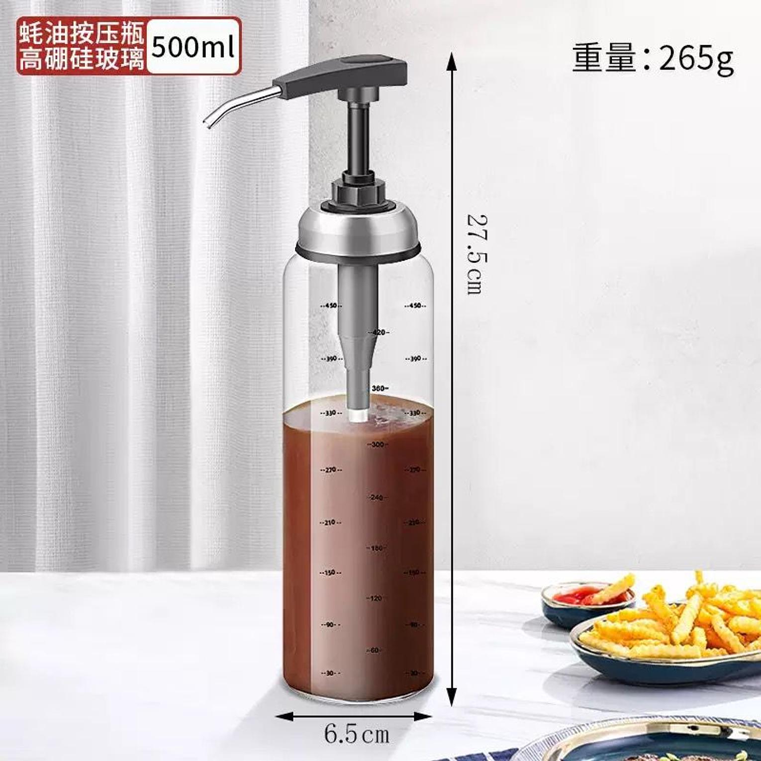 Glass Oil Bottle Cooking Seasoning Sauce Bottle Home Salad Dressing Press Squeeze Bottle Replaceable Washable Refillable