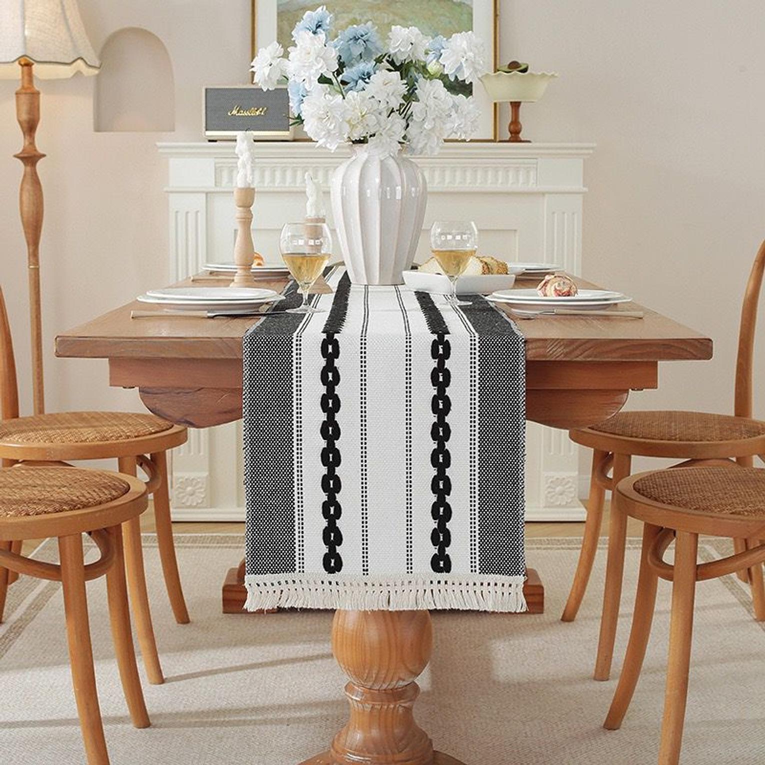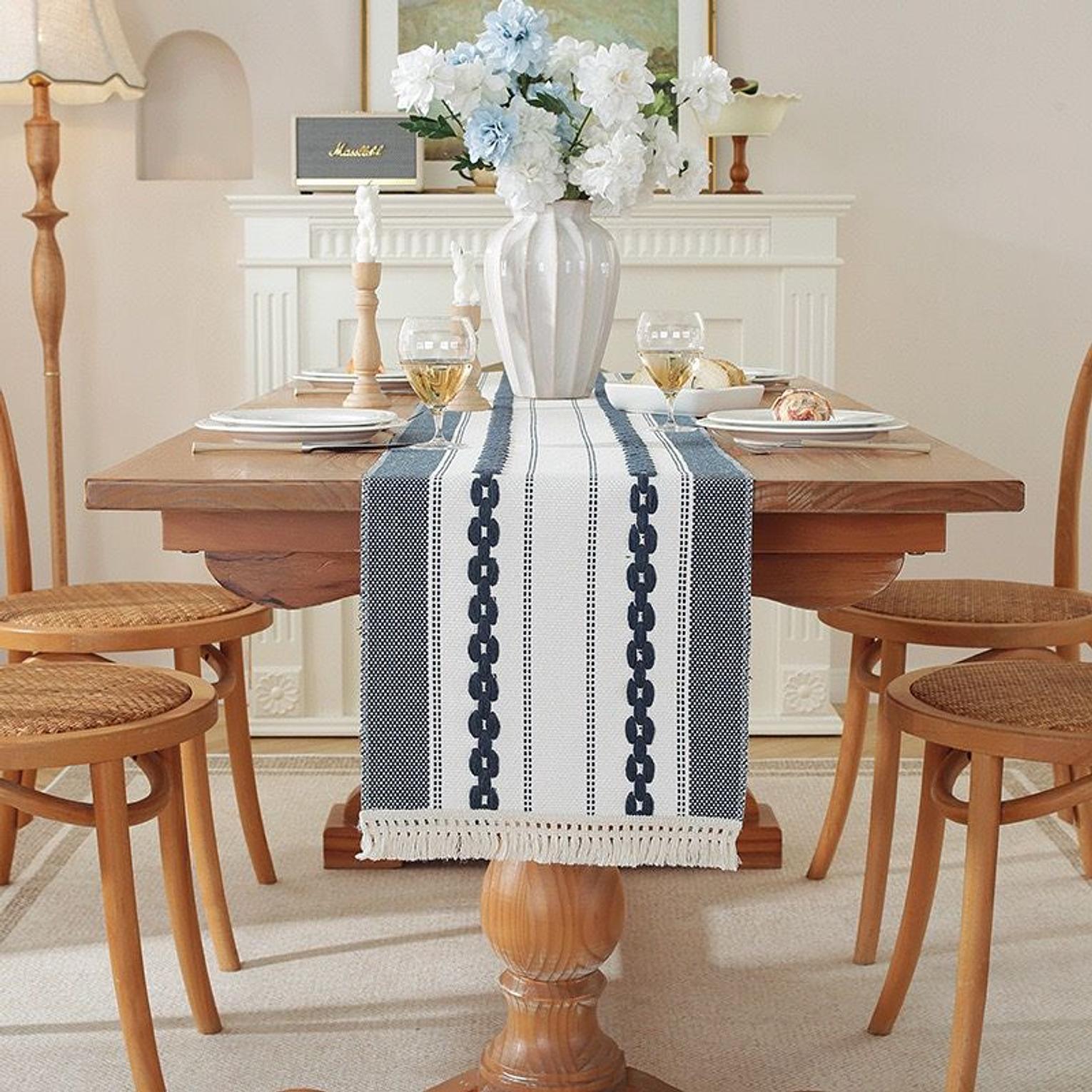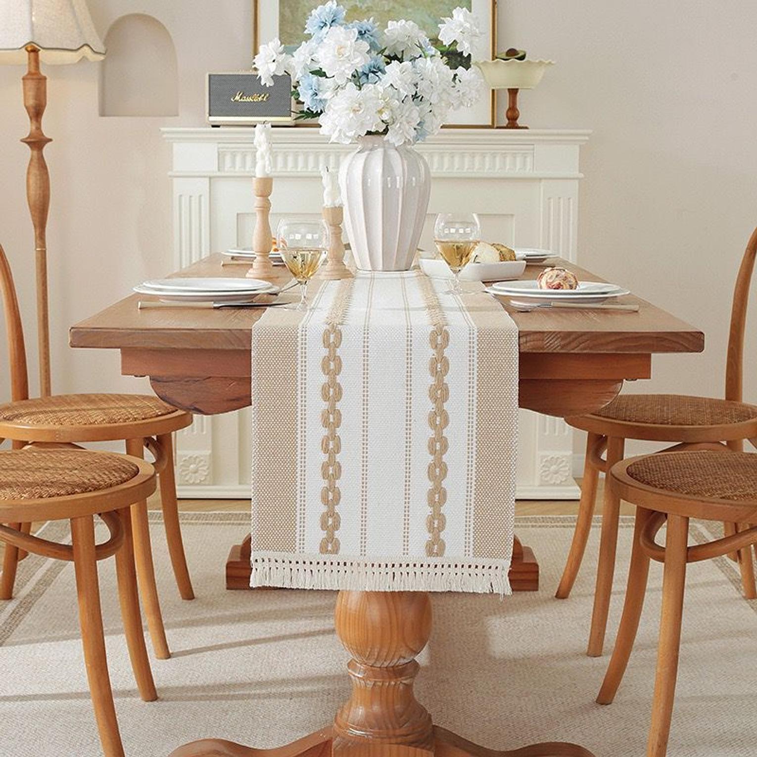 Upgrade your table décor with this modern simple tassel cotton linen table runner. Crafted from a durable and breathable cotton-linen blend, it offers a natural texture that enhances any dining or living space. The minimalist design is complemented by delicate tassel edges, adding a subtle decorative charm without overwhelming your setup. Ideal for dining tables, coffee tables, or console tables, it provides both protection and style for everyday use or special occasions. A versatile piece that brings elegance and simplicity to your home décor.