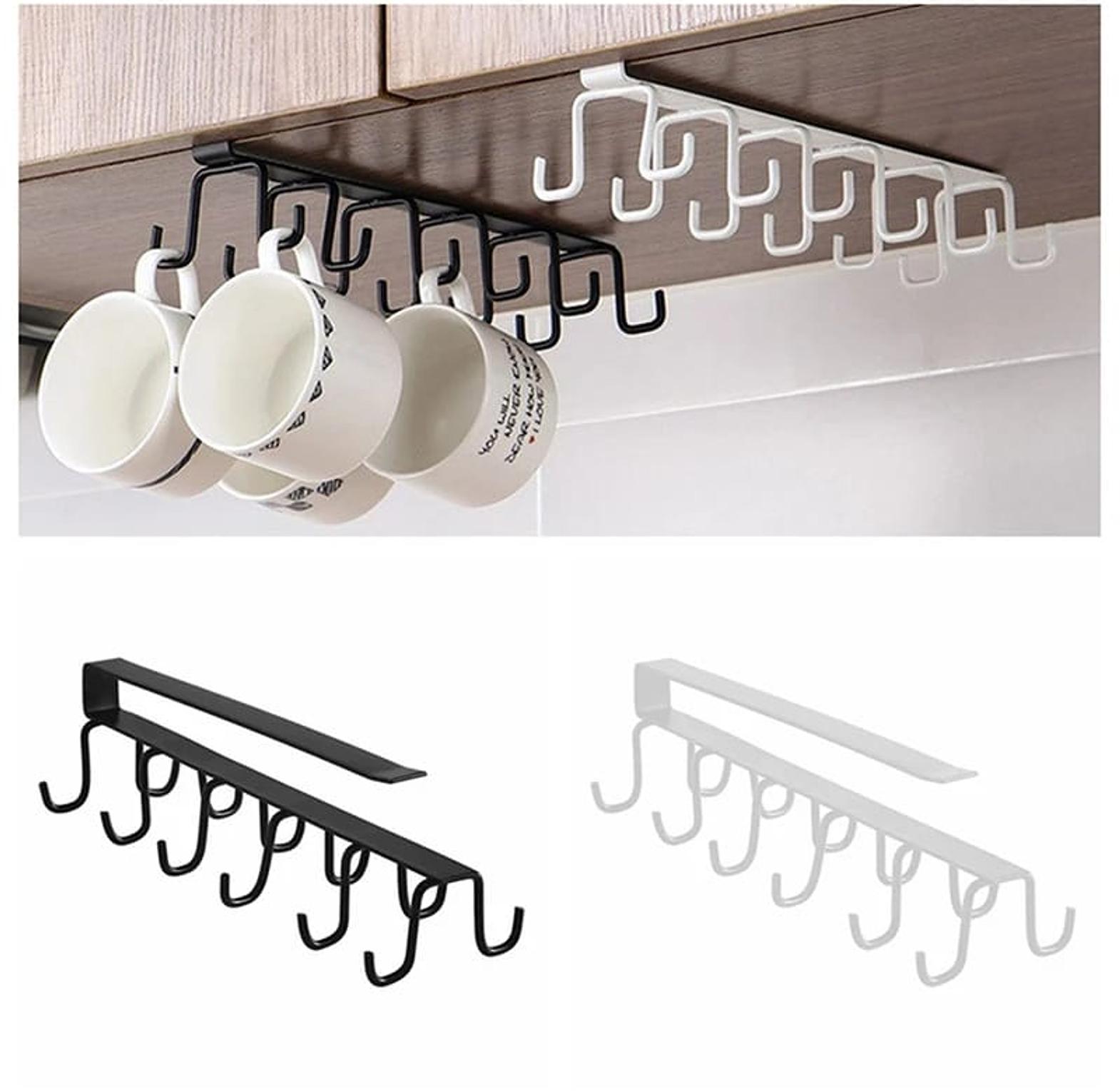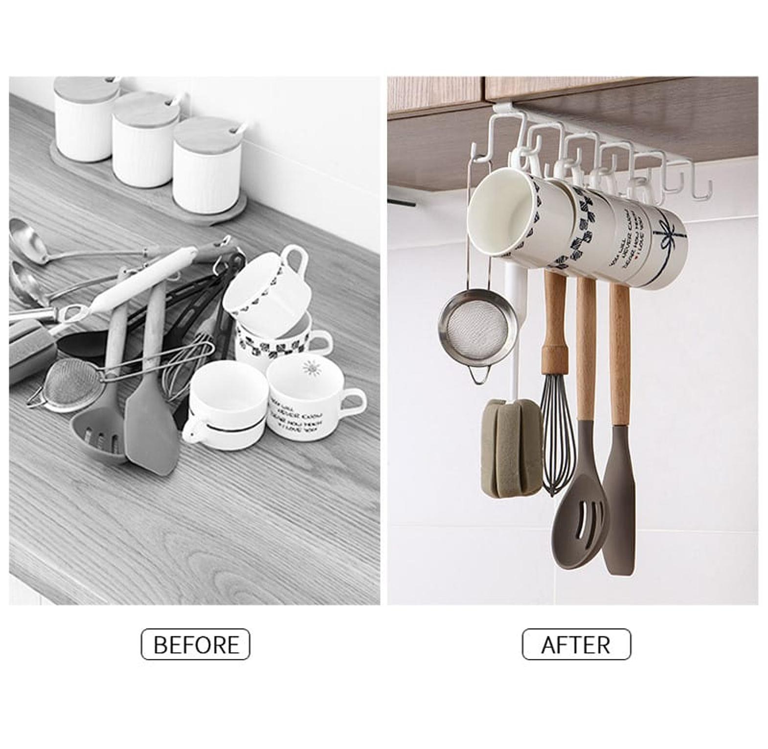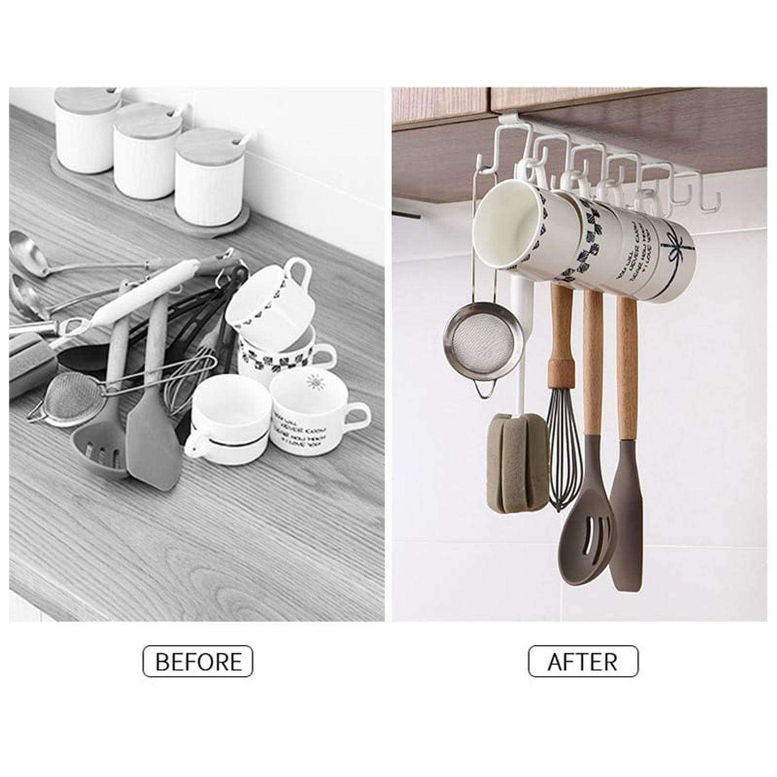 Multifunction Double-row Storage Hook Wardrobe Cabinet Metal Shelves Hanging Hooks Punch-free Hanging Cup Holder Kitchen Tool
