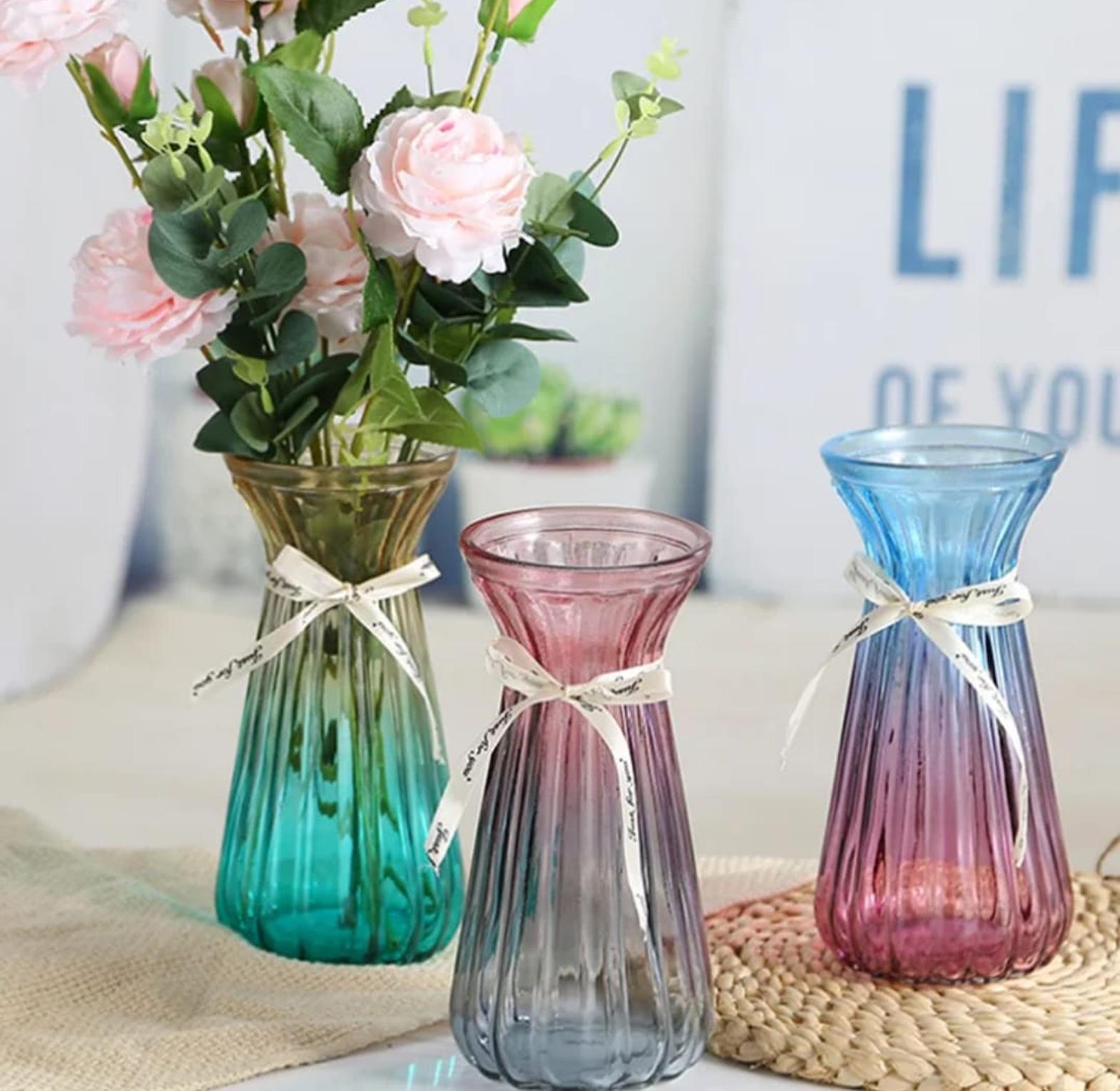 • Artistic Ribbon Detail: Each vase is adorned with a delicate white decorative ribbon tied in a bow around the neck, adding a charming and gift-ready touch.