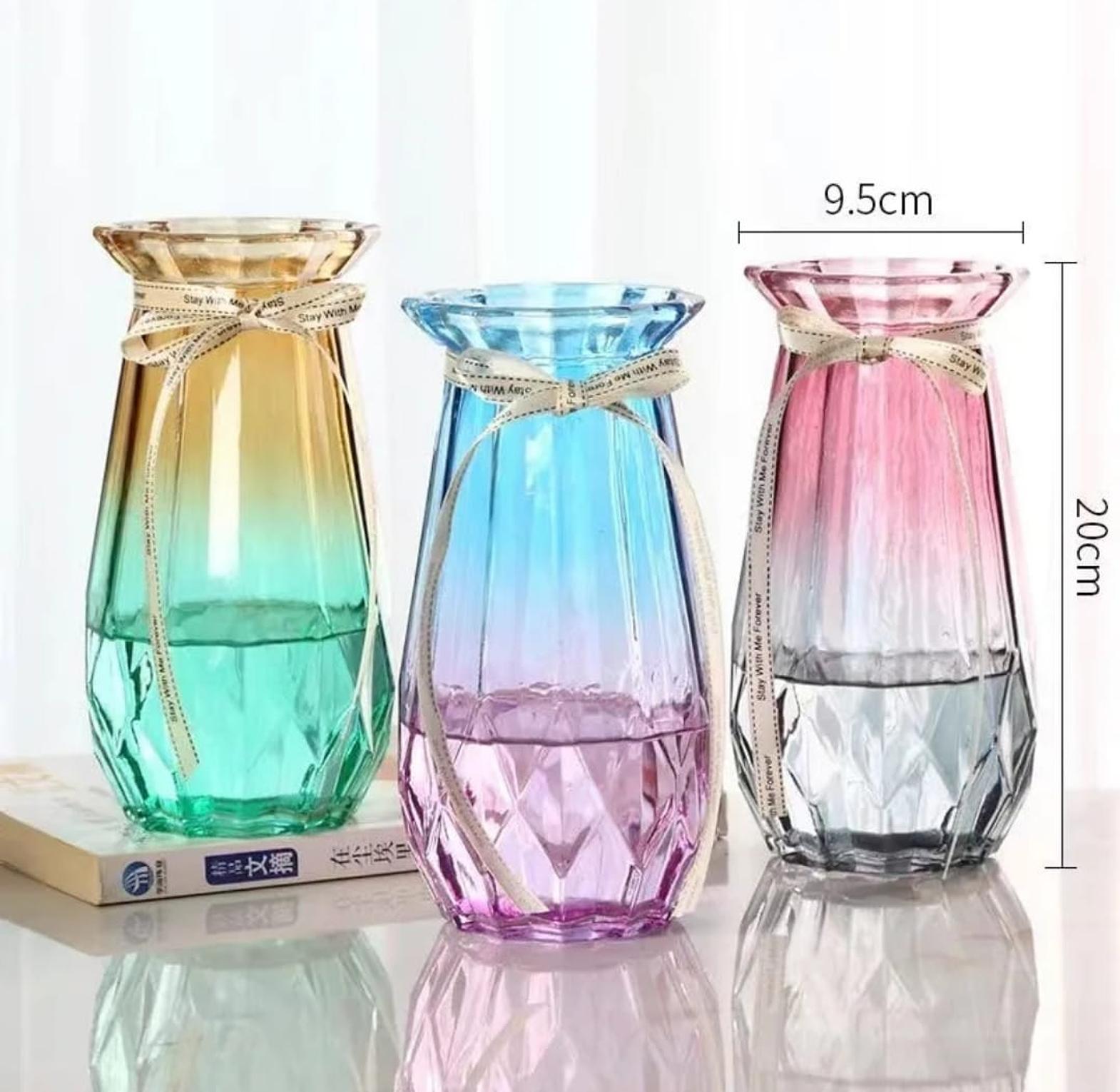 Elevate your interior design with these exquisite glass vases that combine contemporary geometry with timeless elegance. Perfect for adding a touch of sophistication to your living room, office, or dining area, these vases serve as both functional flower holders and high-end artistic statements.