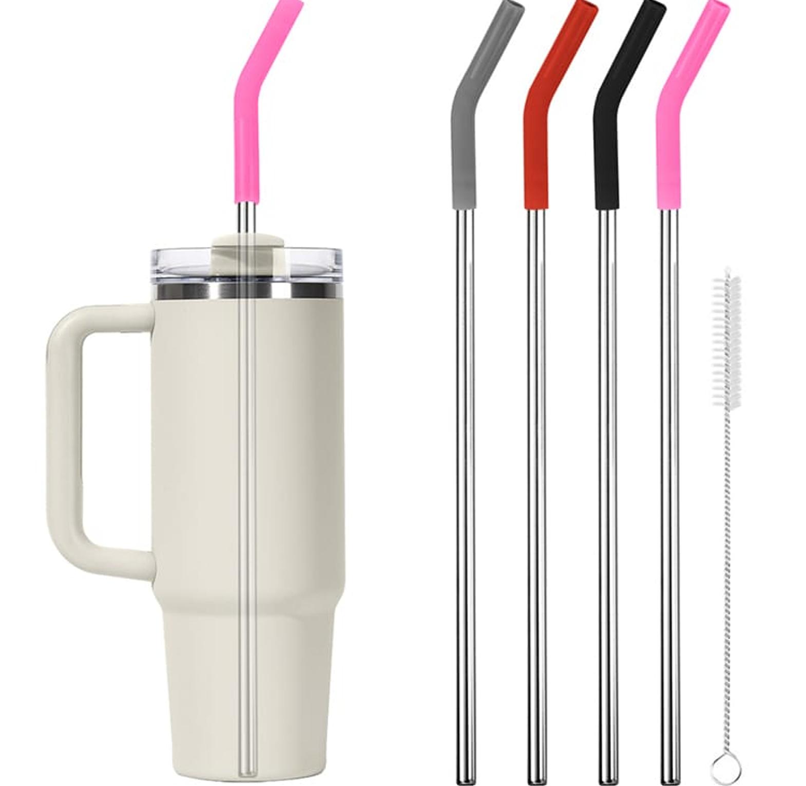 Stainless Steel Straw with Silicone Tips Straw Brush Reusable Straws with Silicone Tips for Stanley 40oz Tumbler