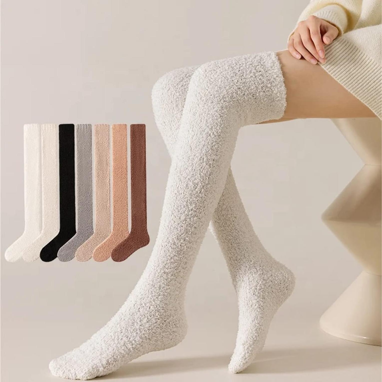 Stay cozy and warm with these coral fleece over-knee socks, designed for ultimate comfort at home. Soft, plush, and perfect for cold days or relaxing nights.