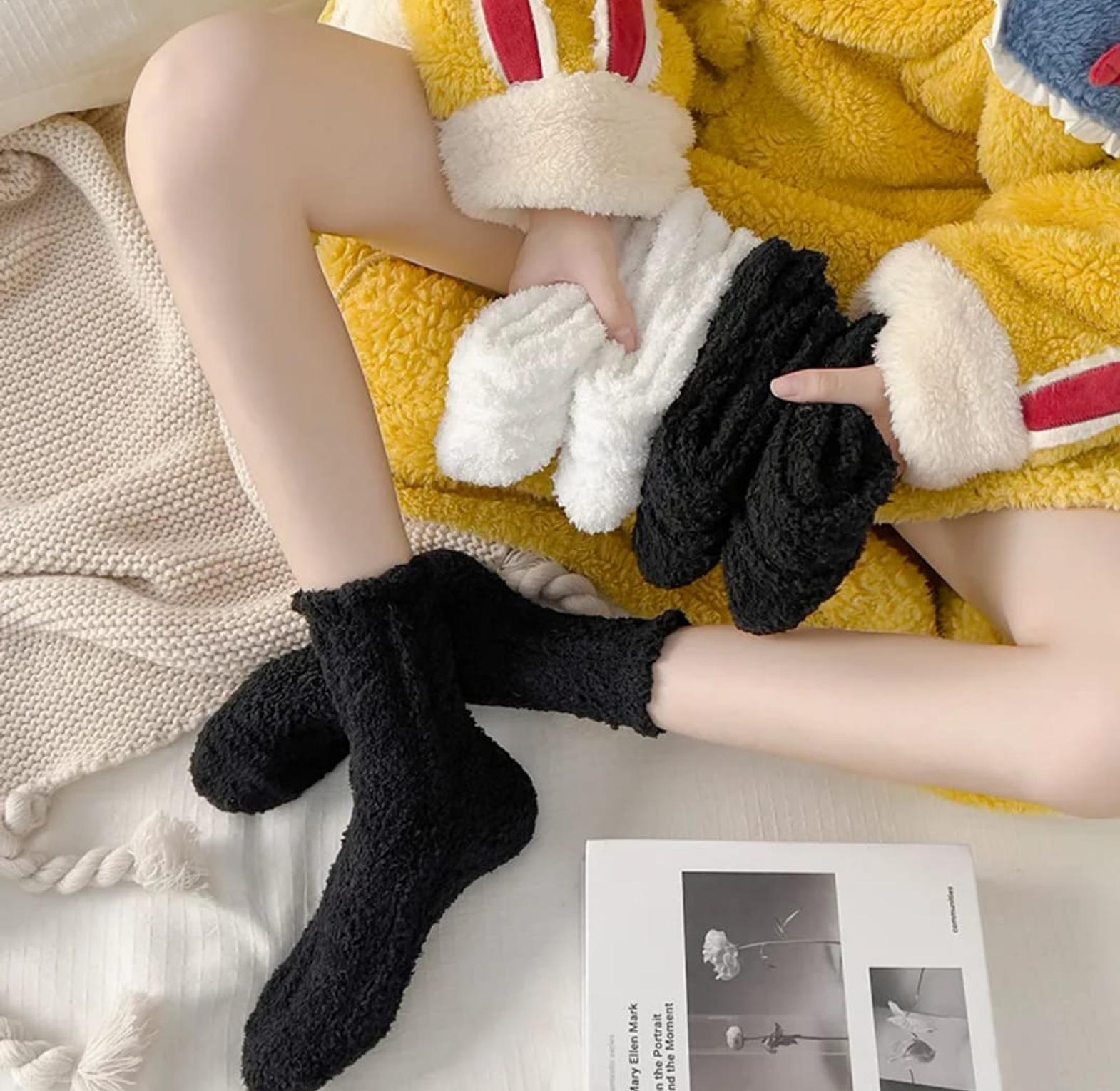 Women Socks Winter Fleece Fuzzy Sock Female Autumn Happy Funny Middle Tube Thick Warm Home Black White Floor Soft Sock