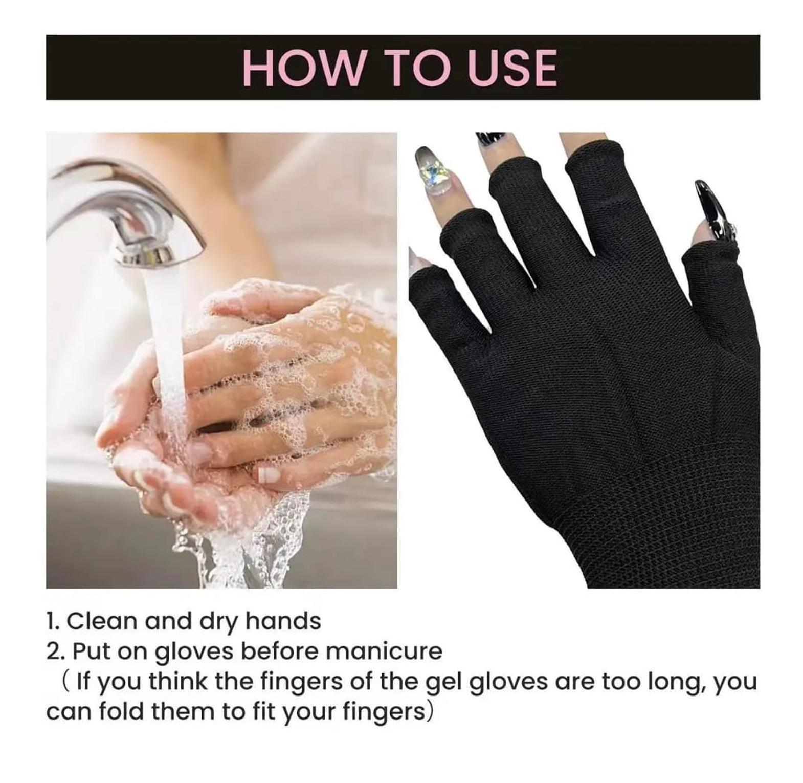 Stay safe while doing nail treatments with these anti-UV protective gloves designed for use under LED and UV nail lamps. Made with radiation-resistant material, they help shield your hands from harmful UV exposure during gel polish curing and nail art procedures. Lightweight and breathable, they offer comfort without restricting movement, making them ideal for both professional and home use. Perfect for manicure sessions, these gloves combine safety, practicality, and ease of use for healthier nail care routines.