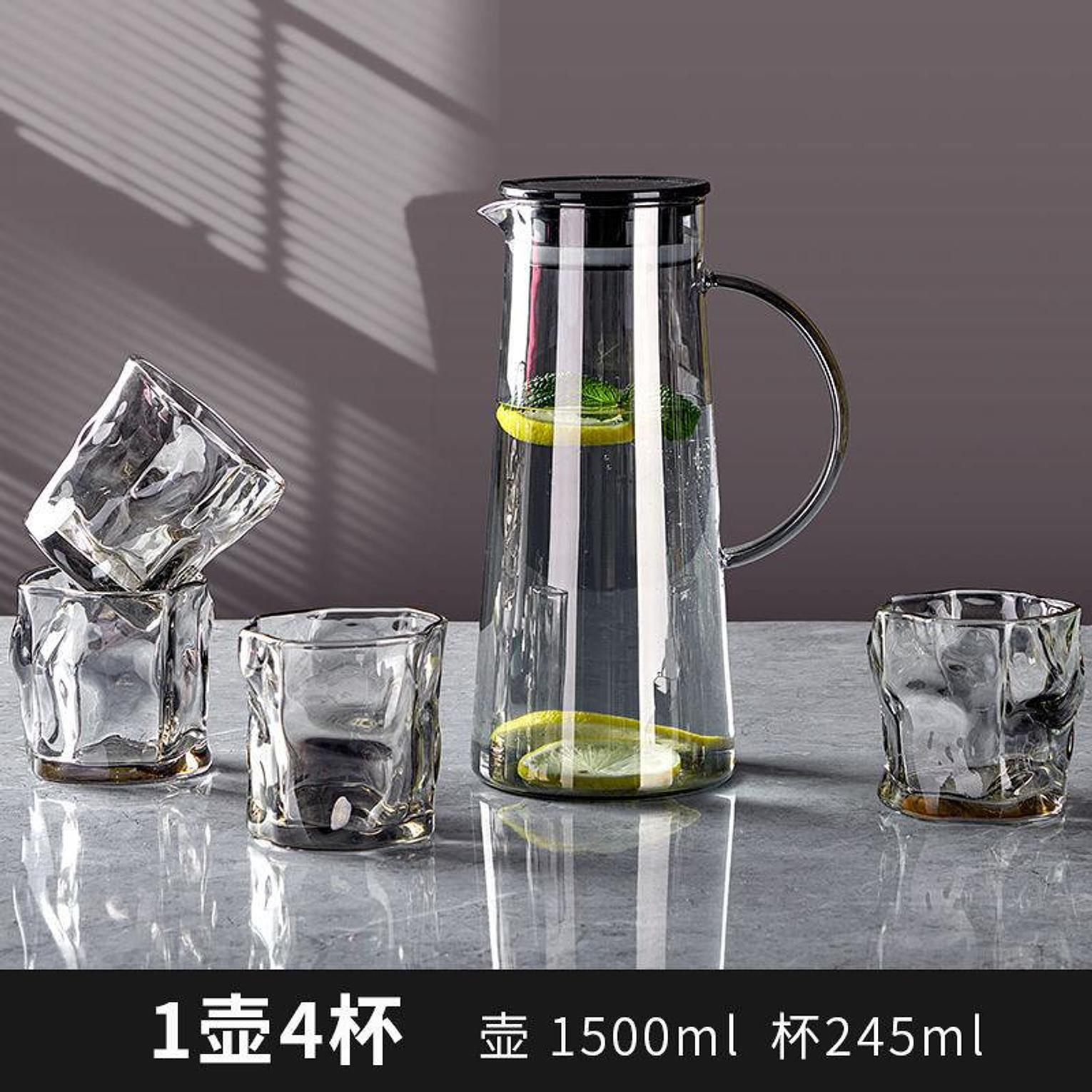 1500ml Glass Water Pitcher With Lid and 4pc Water Glasses