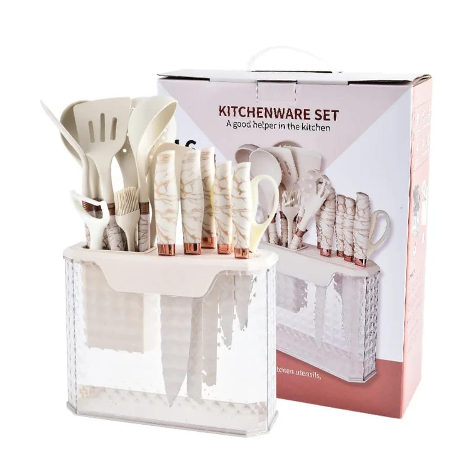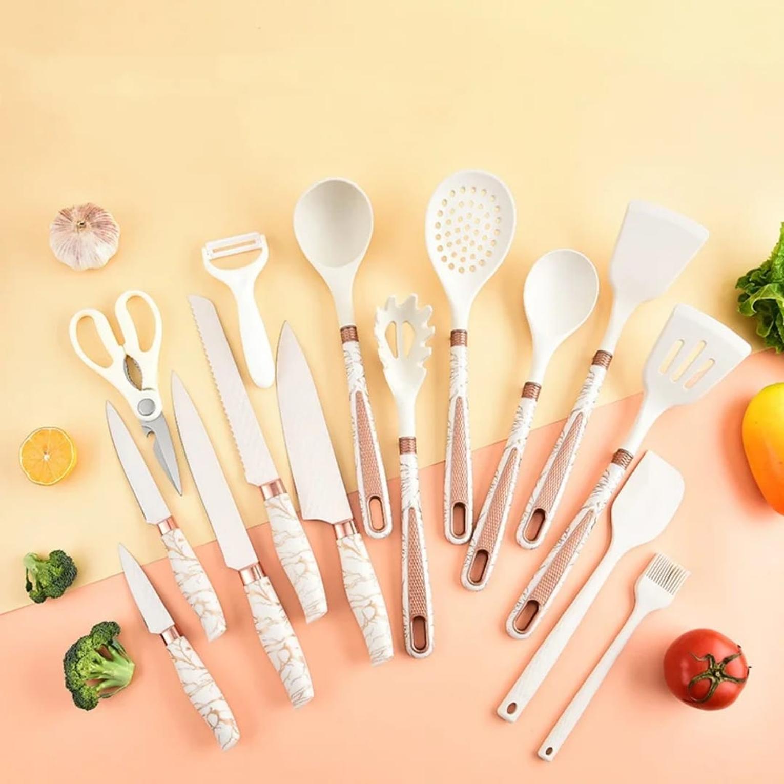 16PCS/Stainless Steel Kitchen Knife Silicone kitchenware set Spatula spoon bread knife scissors peeler cut meat knife Tool rest