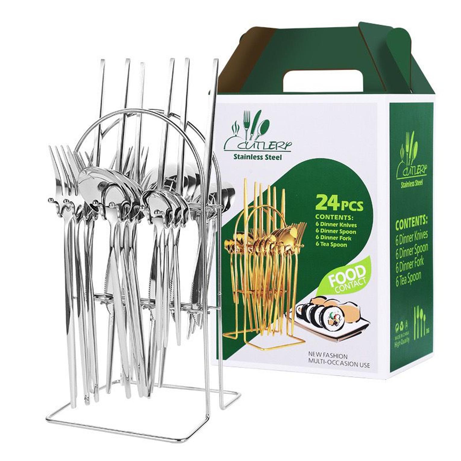 24 pcs tableware Stainless steel Heavy gauge knife fork and spoon storage rack gift box gold cutlery set dinnerware