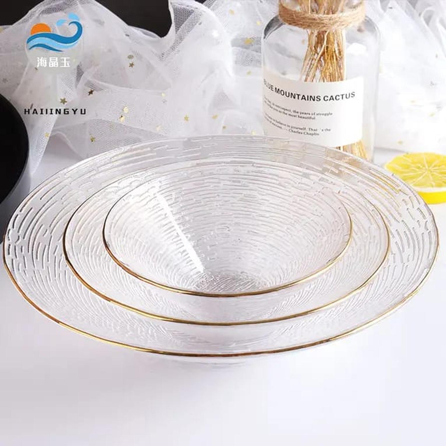 3pc set Transparent Glass Plate  Golden Edge Fruit Salad Dessert Breakfast Dish Bowl Set Tablewear Dishes