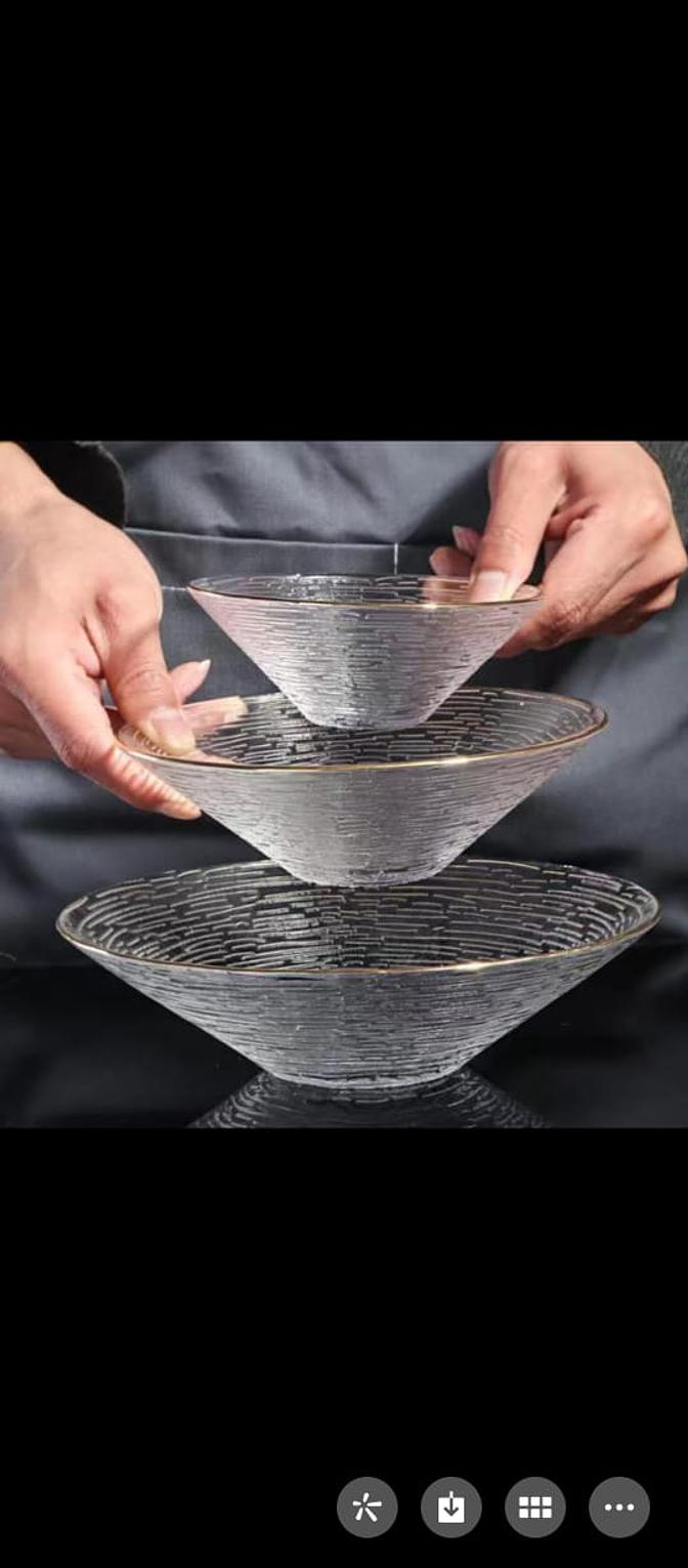 Add a touch of luxury to your table with this 3-piece transparent glass plate set designed with a refined golden edge finish. Perfect for serving fruits, salads, desserts, or breakfast, these plates combine functionality with elegant presentation. The clear glass design beautifully showcases your food, while the gold detailing enhances your table setting for both everyday meals and special occasions. Durable and easy to clean, this stylish tableware set is ideal for home dining, entertaining guests, or gifting.