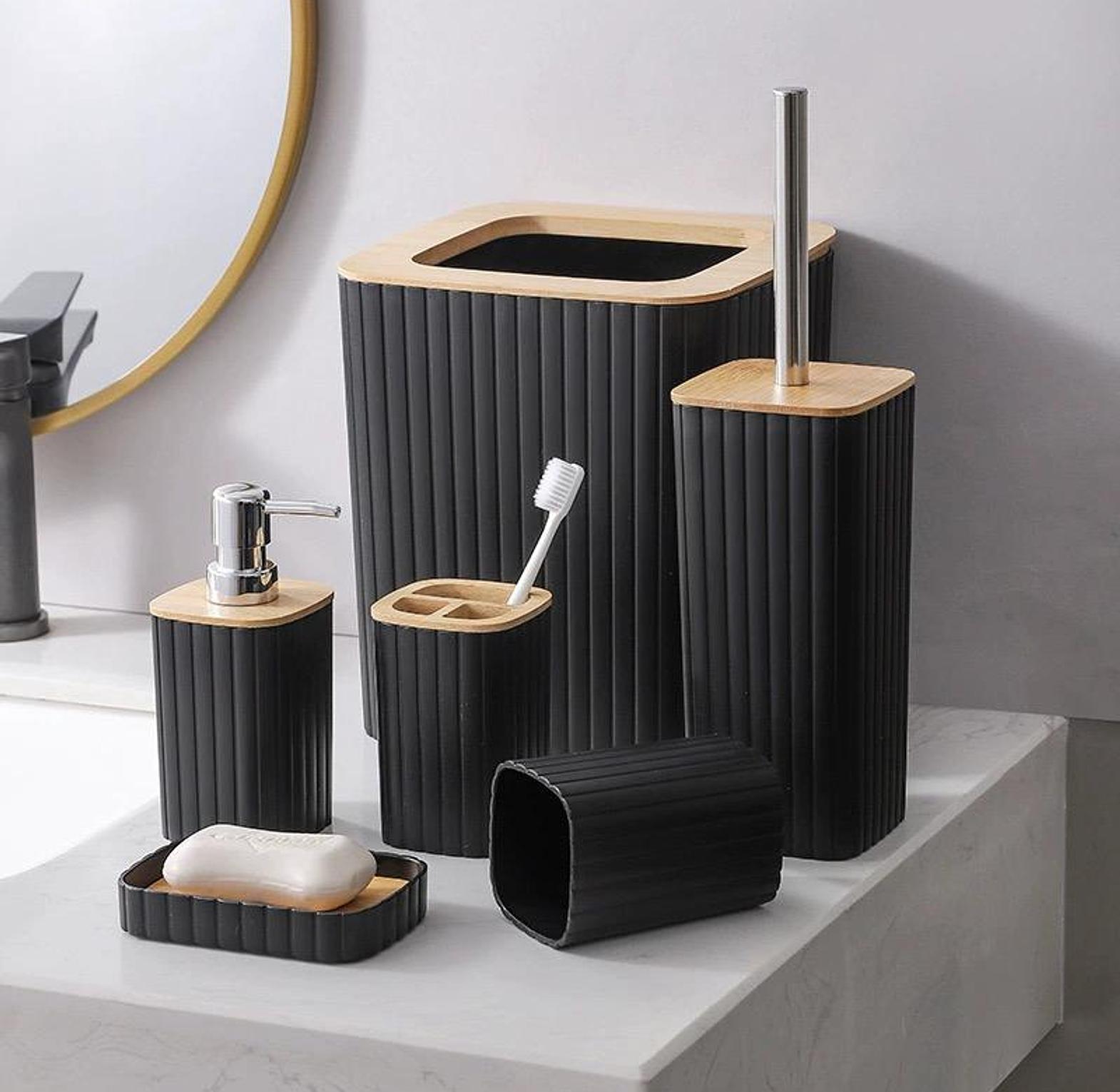 This 6-piece bathroom set is designed to bring order, cleanliness, and style to your bathroom space.