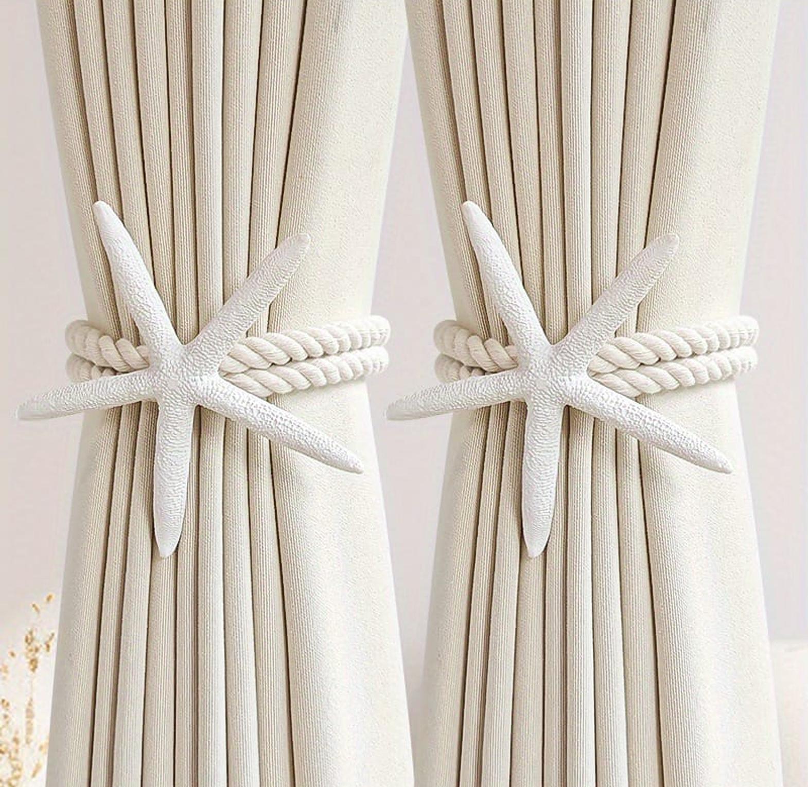 Each tieback features a decorative starfish accent, adding a unique beach-style charm to window décor.