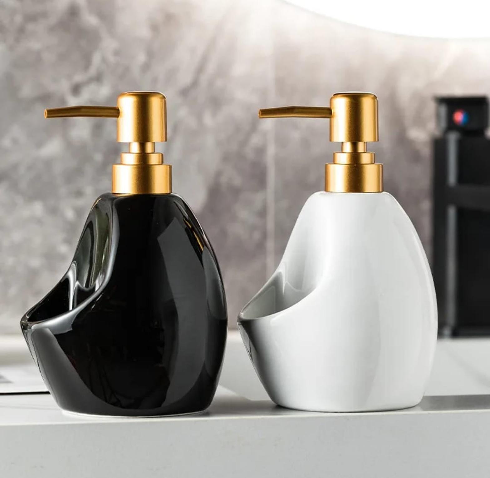 Upgrade your kitchen or bathroom with this stylish ceramic soap dispenser with an integrated sponge holder. Its smart 2-in-1 design keeps your soap and sponge conveniently in one place, reducing clutter around your sink. The easy press pump ensures smooth and controlled soap dispensing, making dishwashing or handwashing quick and efficient. Made from durable ceramic, it’s easy to clean and adds a modern, elegant touch to your space while maintaining everyday practicality.