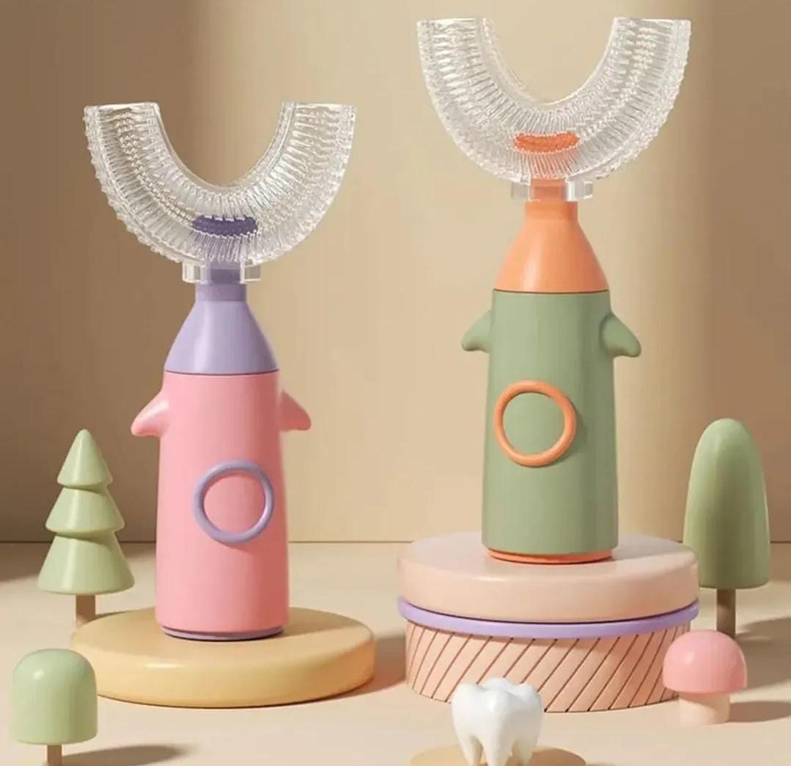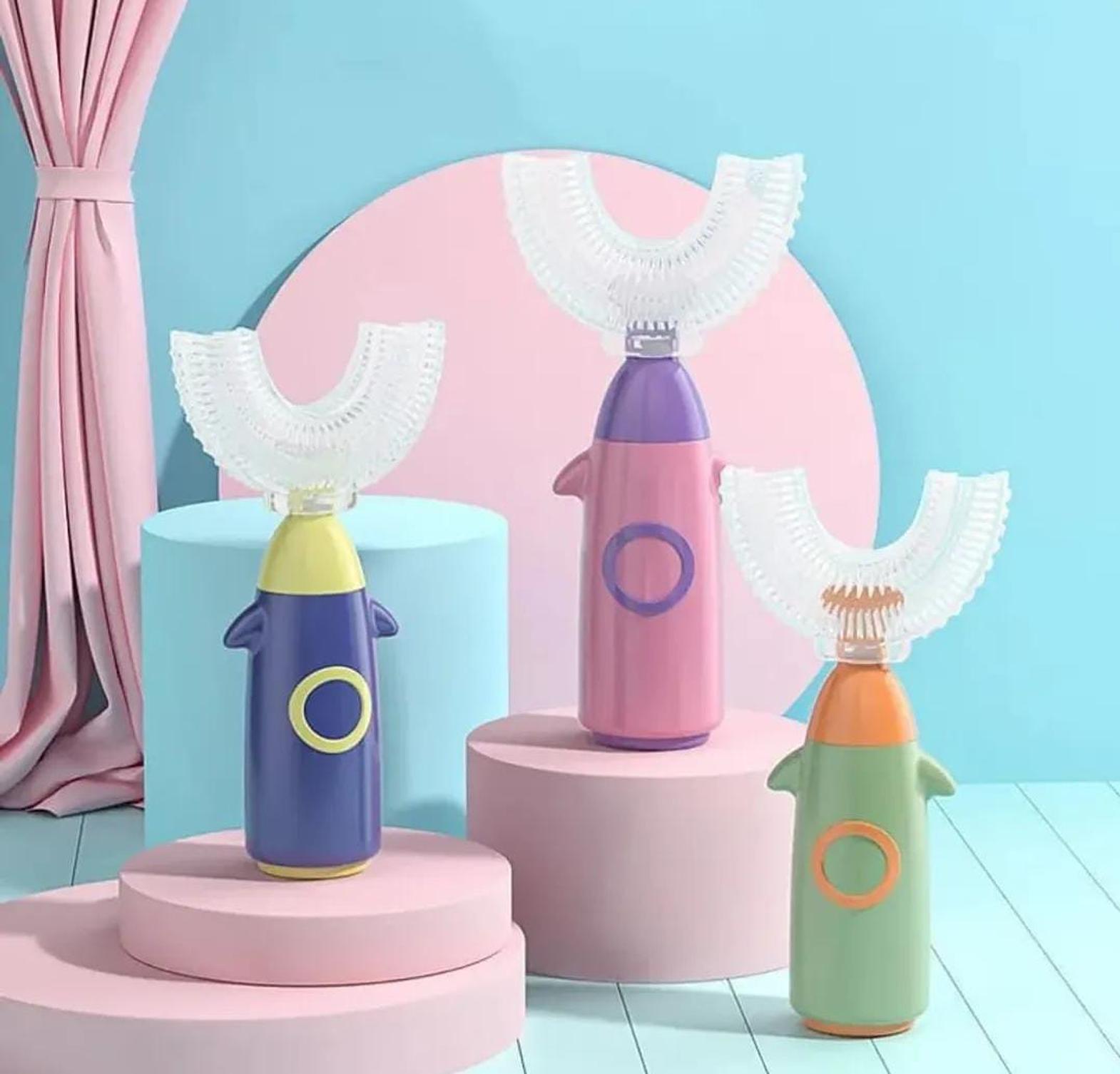 A children’s U-shaped manual toothbrush made with a soft liquid silicone head, designed for gentle, effective, and washable oral care.