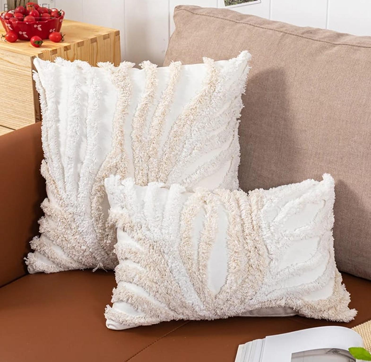 Cushion Cover Beige Grey Tufted Coral Stylish Pillow Cover
