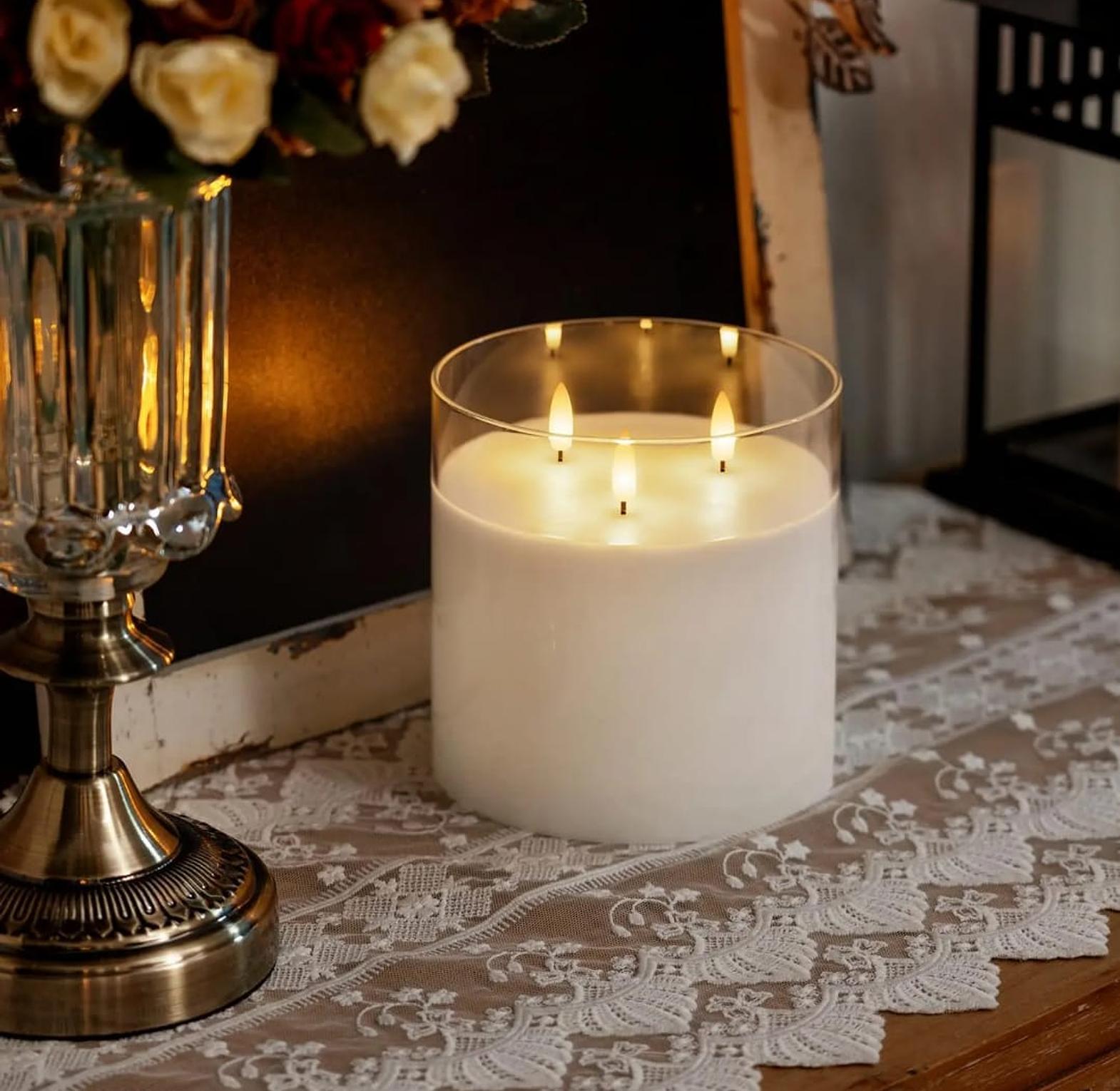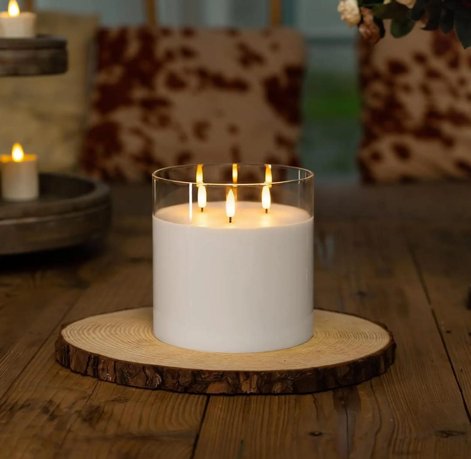 This extra-large flameless candle is designed to provide the warm glow of real candles without smoke, heat, or fire risk.
