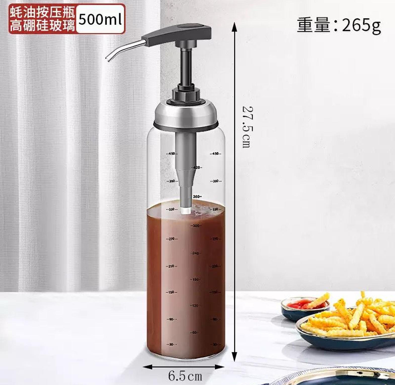 Glass Oil Bottle Cooking Seasoning Sauce Bottle Home Salad Dressing Press Squeeze Bottle Replaceable Washable Refillable