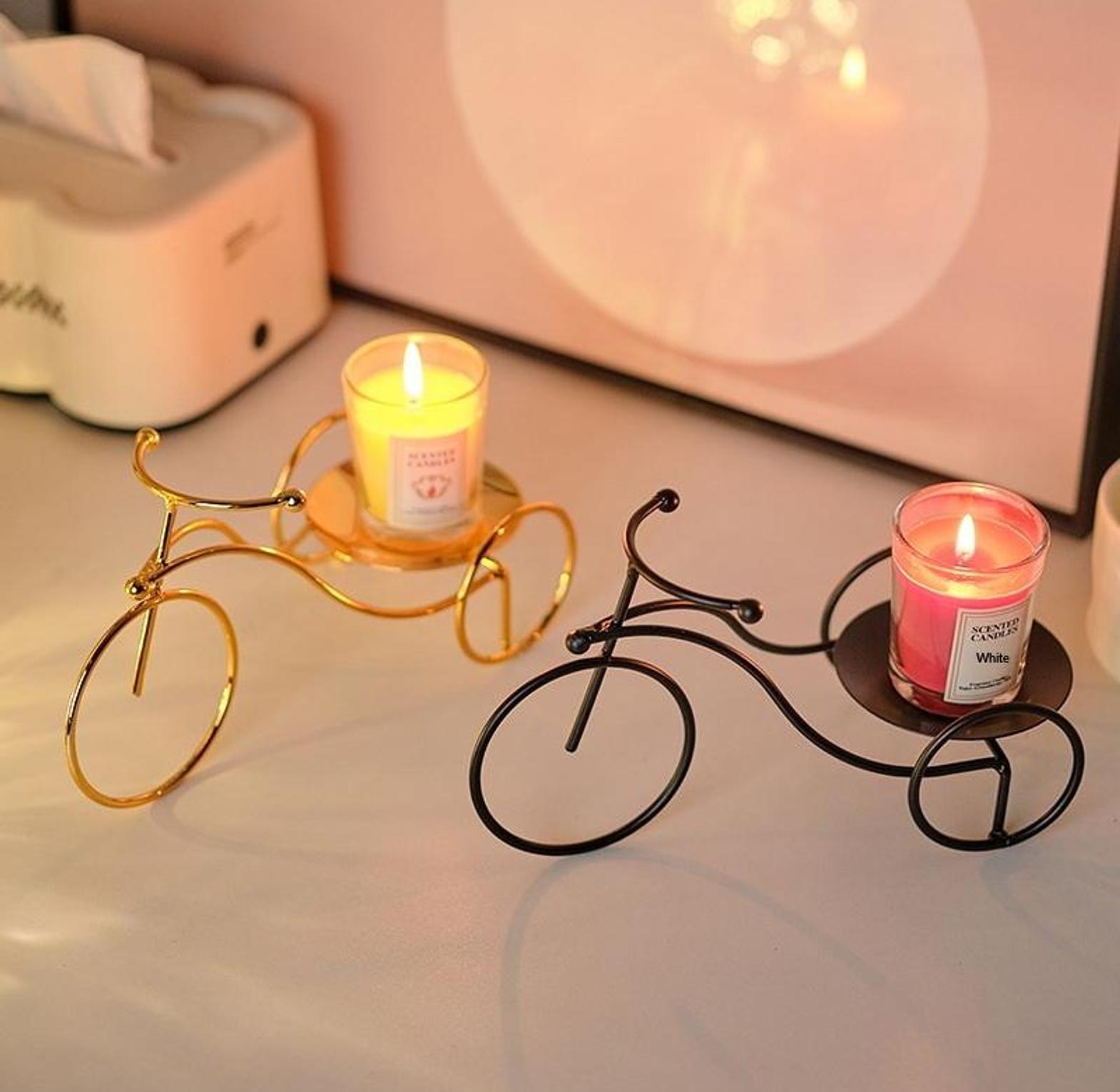 This tricycle candle holder is crafted with a luxurious golden finish that enhances any interior setting.