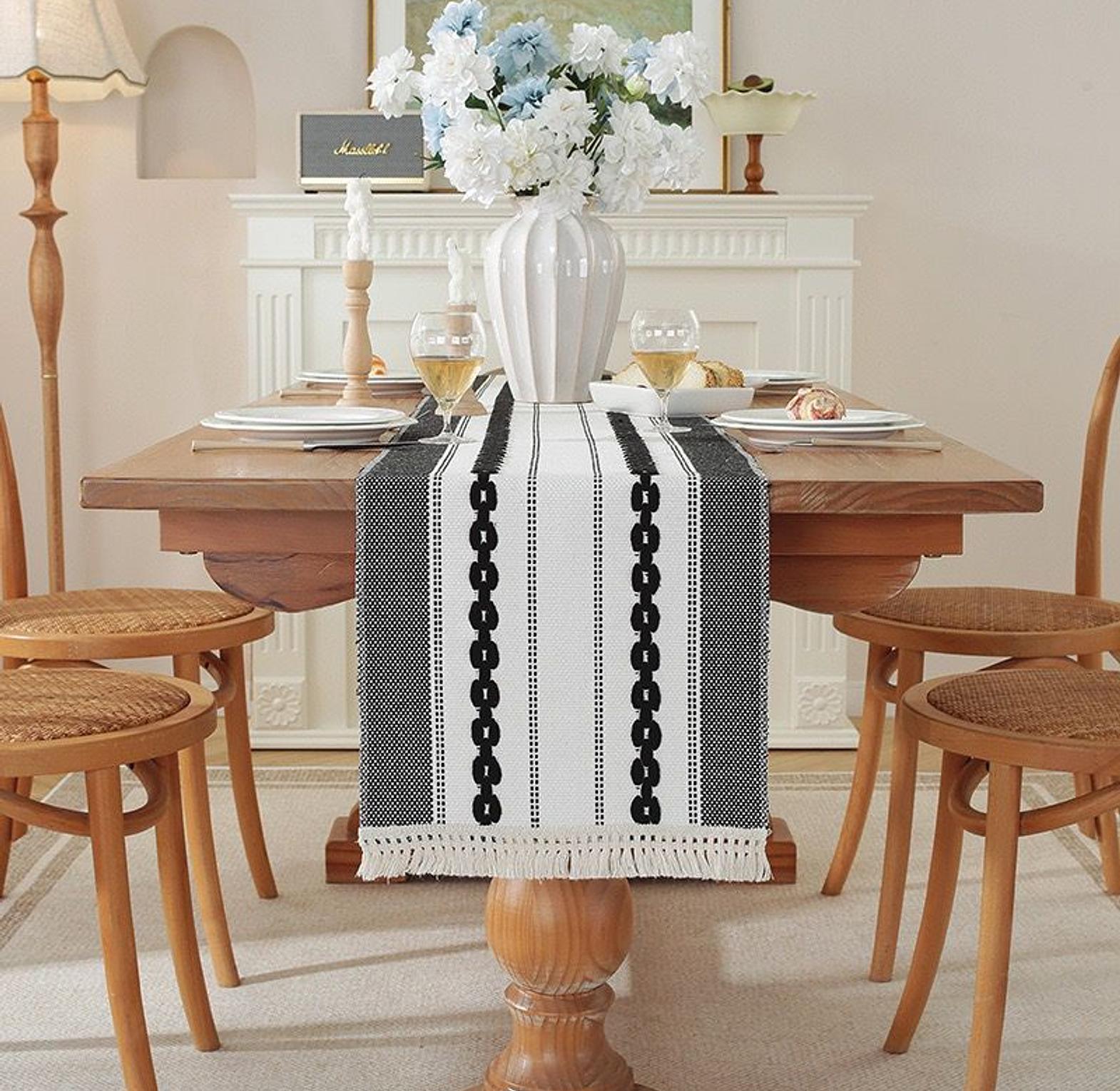 Upgrade your table décor with this modern simple tassel cotton linen table runner. Crafted from a durable and breathable cotton-linen blend, it offers a natural texture that enhances any dining or living space. The minimalist design is complemented by delicate tassel edges, adding a subtle decorative charm without overwhelming your setup. Ideal for dining tables, coffee tables, or console tables, it provides both protection and style for everyday use or special occasions. A versatile piece that brings elegance and simplicity to your home décor.