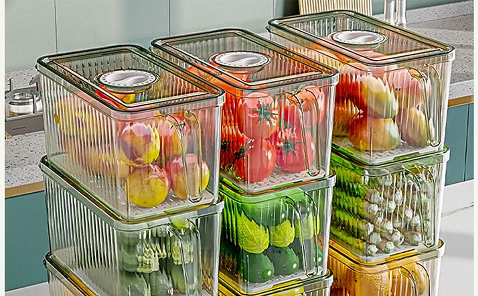 Refrigerator Storage Box Food Grade PET Kitchen Fruit Vegetable Crisper Refrigerator Freezer Storage Box with Lid Home Organizer