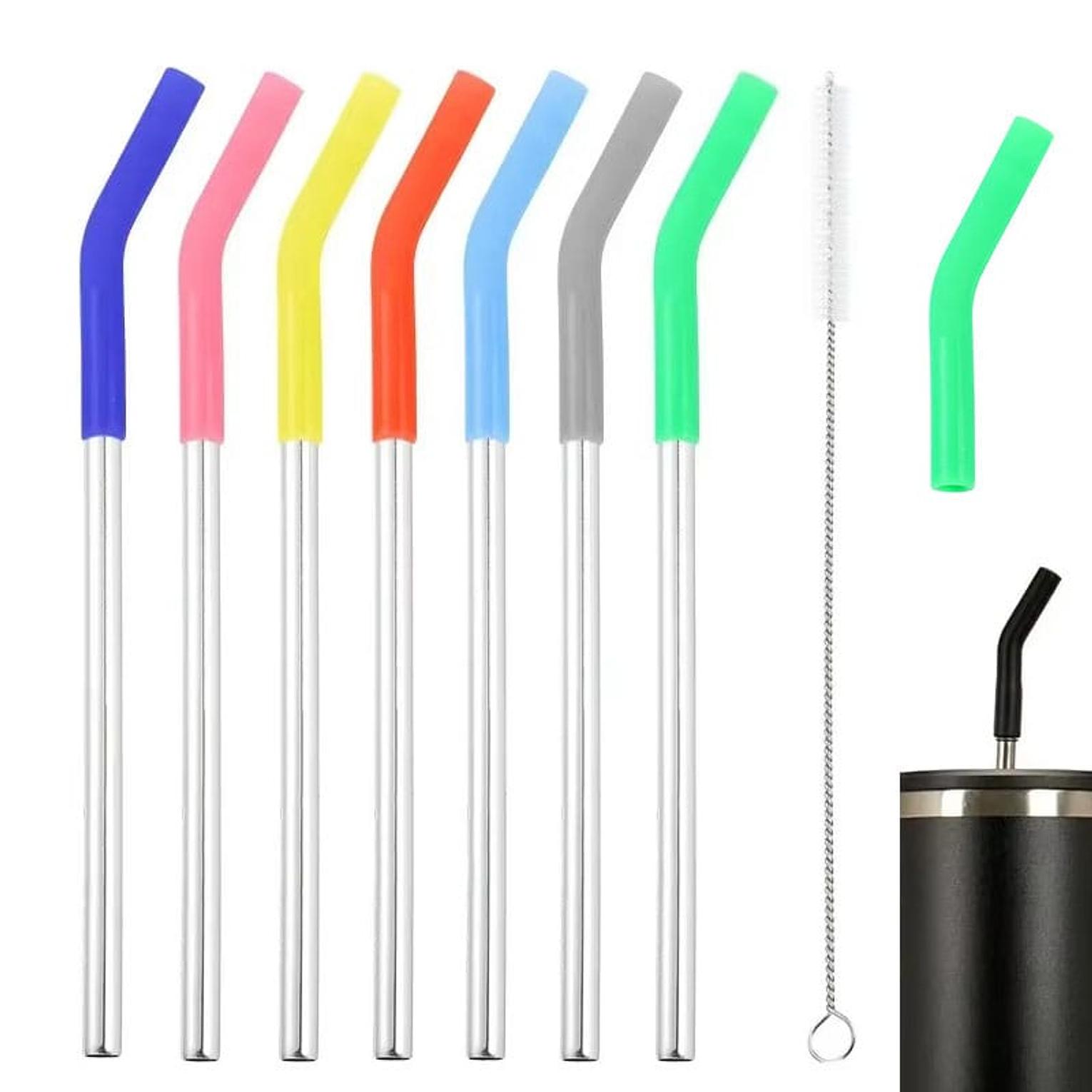 Stainless Steel Straw with Silicone Tips Straw Brush Reusable Straws with Silicone Tips for Stanley 40oz Tumbler