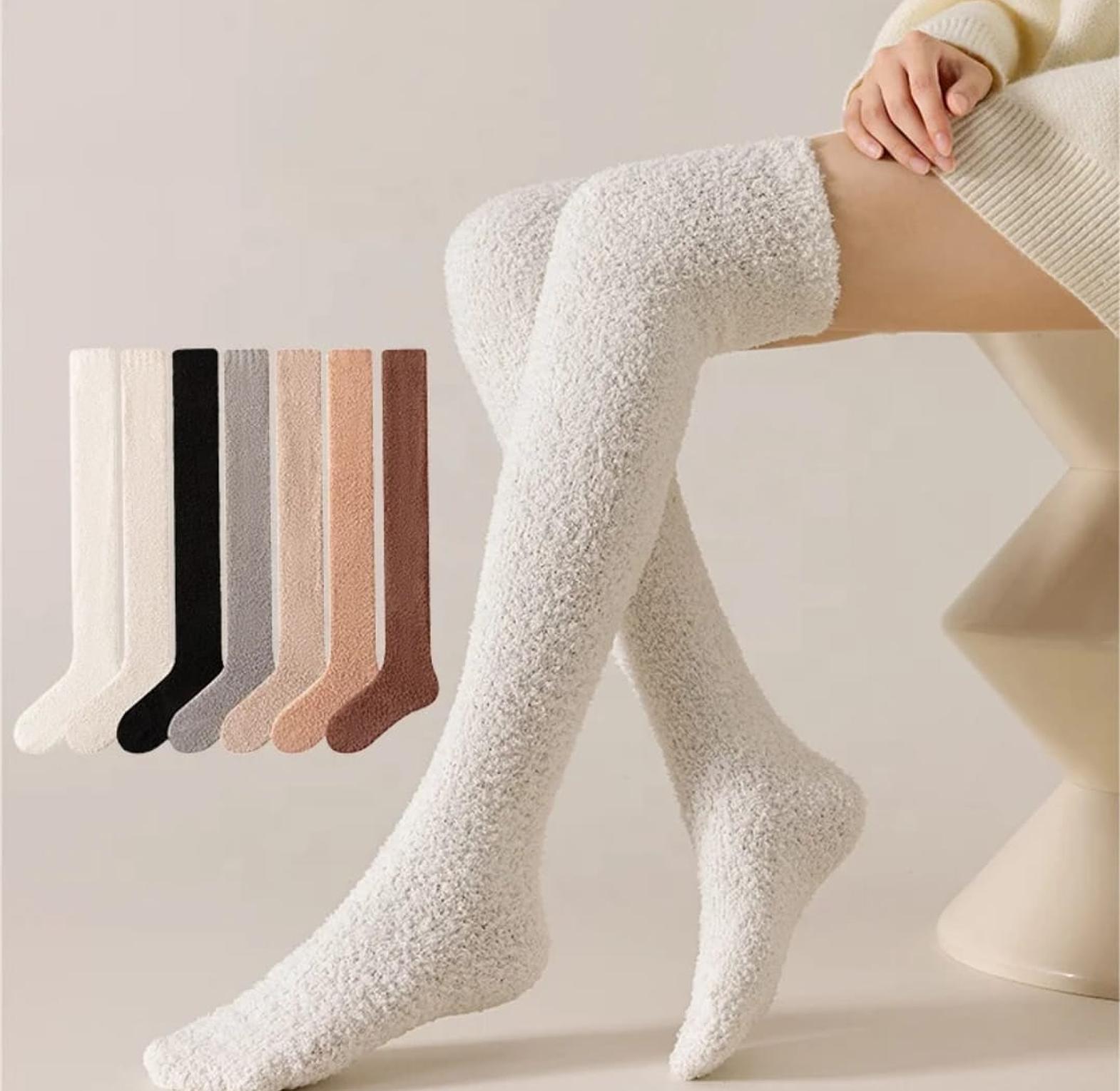 Stay cozy and warm with these coral fleece over-knee socks, designed for ultimate comfort at home. Soft, plush, and perfect for cold days or relaxing nights.